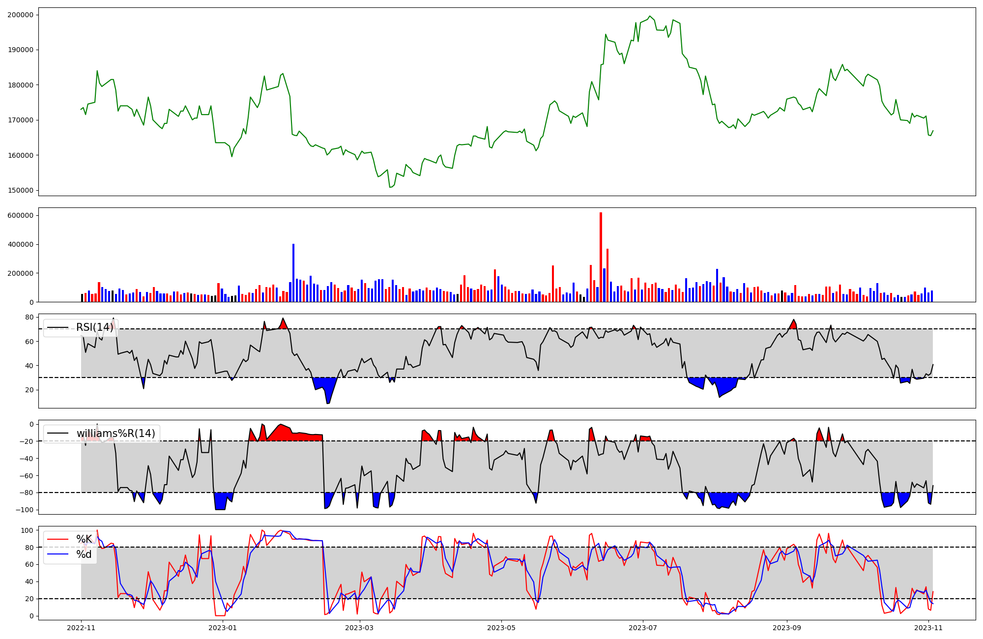 | RSI | Williams %R | stochastic(%K) | |
