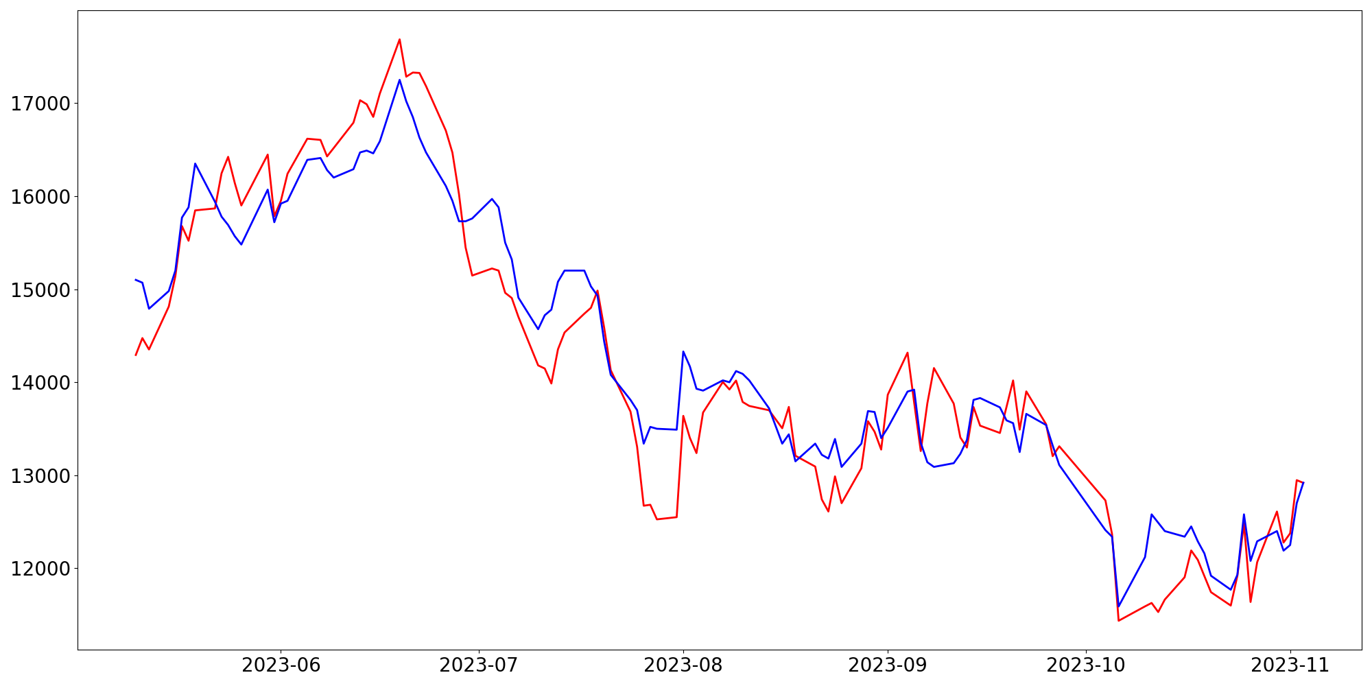 [ - : 실제값(종가) / - : 예측값(종가) ]
