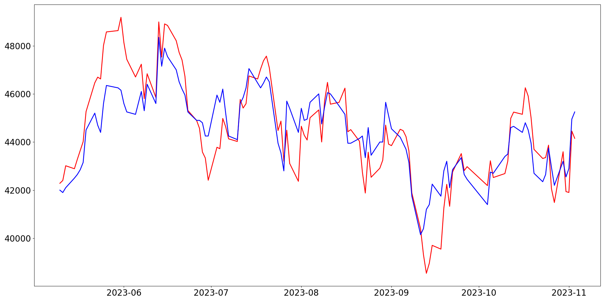 [ - : 실제값(종가) / - : 예측값(종가) ]