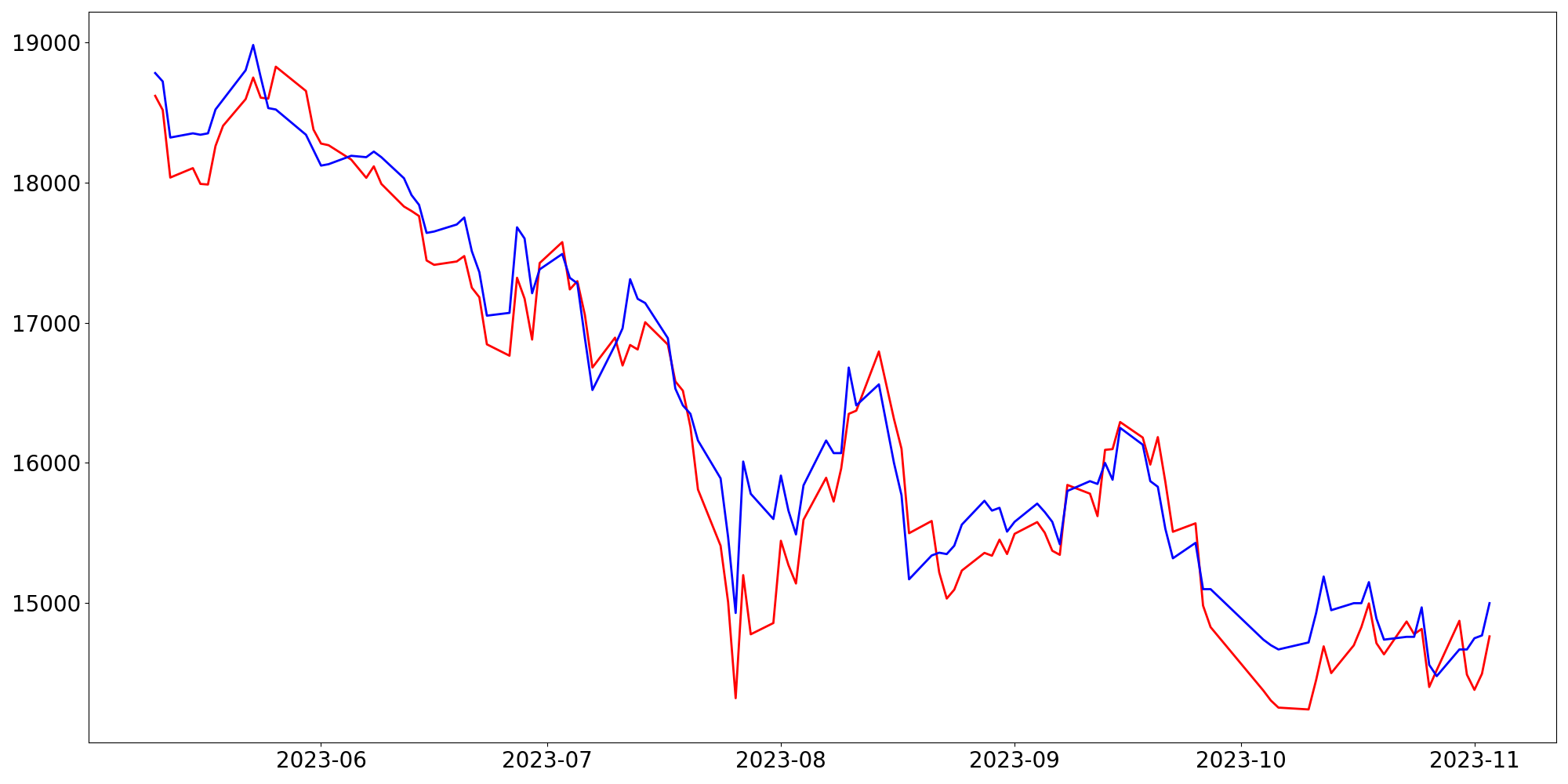 [ - : 실제값(종가) / - : 예측값(종가) ]