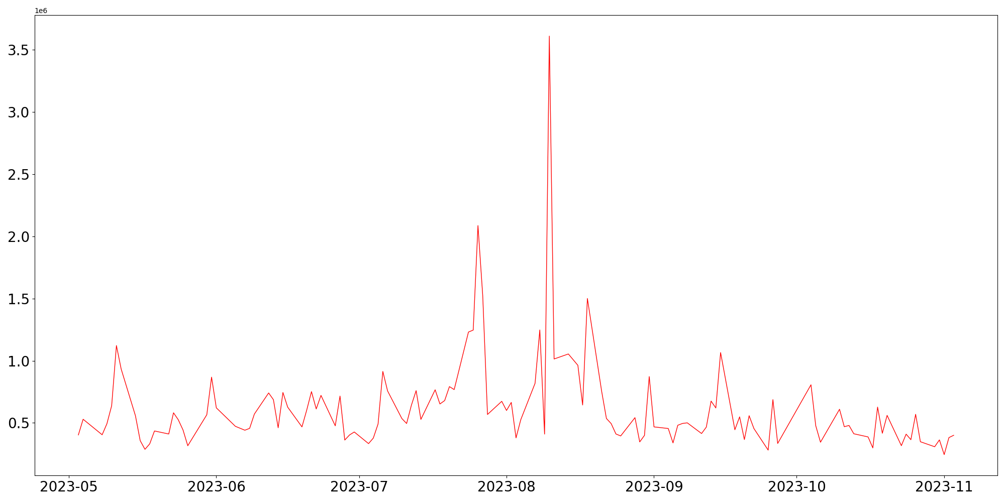 일별 공매도 거래량 추이를 그래프로 나타낸 것으로 공매도 거래량이 증가할 수록 단기적으로 가격 하락을 예측하는 시장참가자가 증거하는 것으로 판단해 볼 수 있습니다.