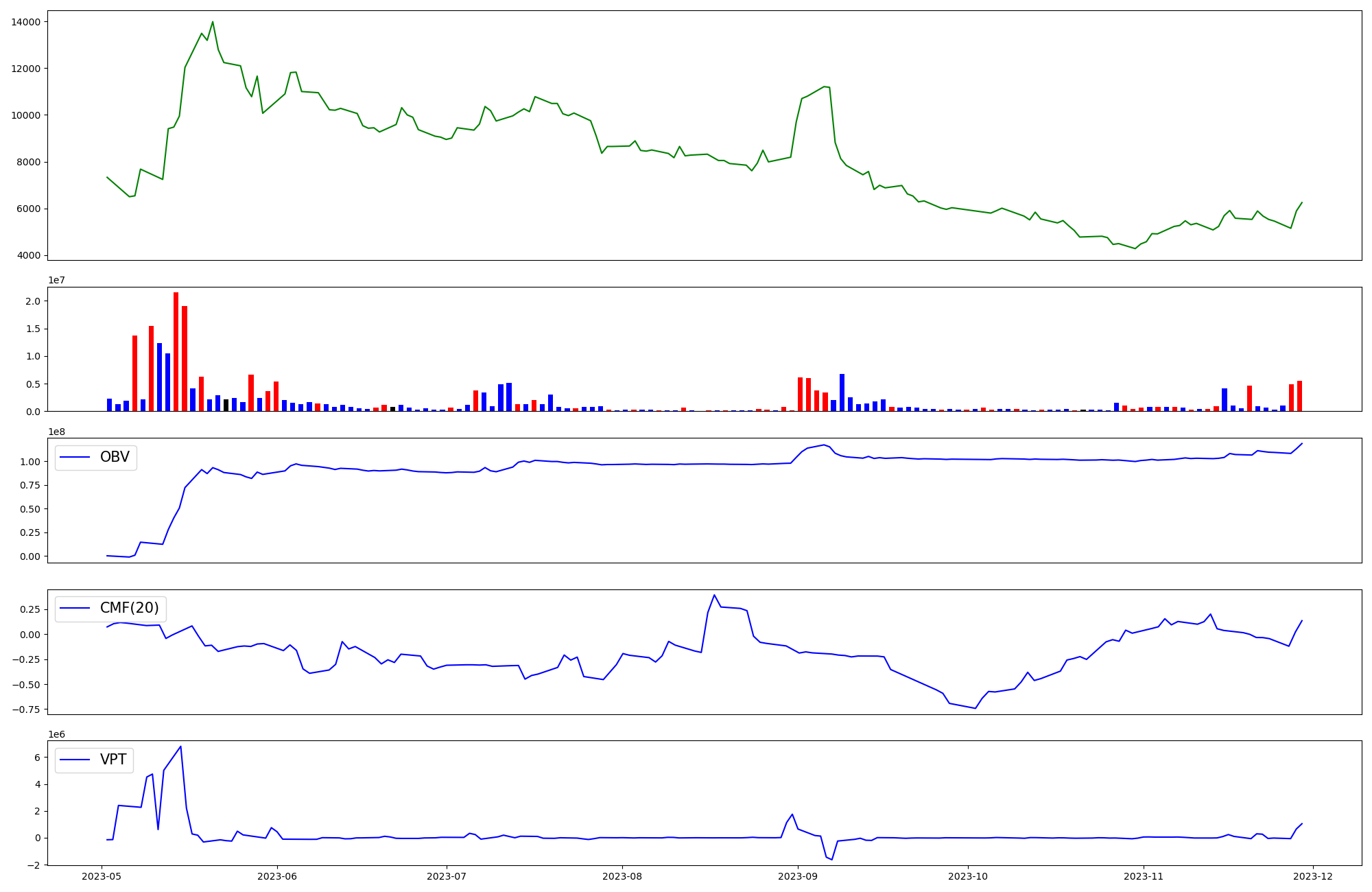 | OBV | CMF | VPT | |