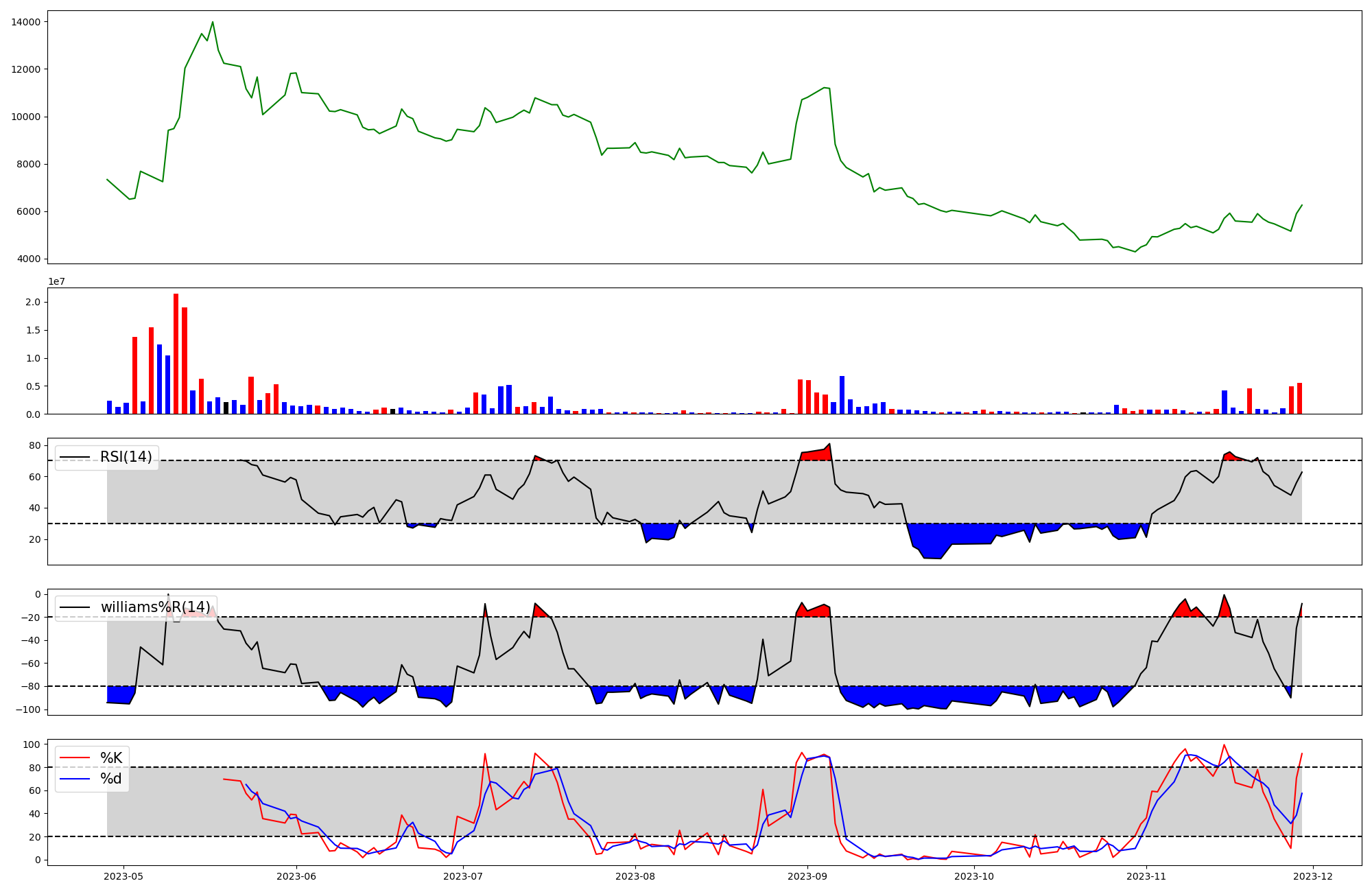 | RSI | Williams %R | stochastic(%K) | |
