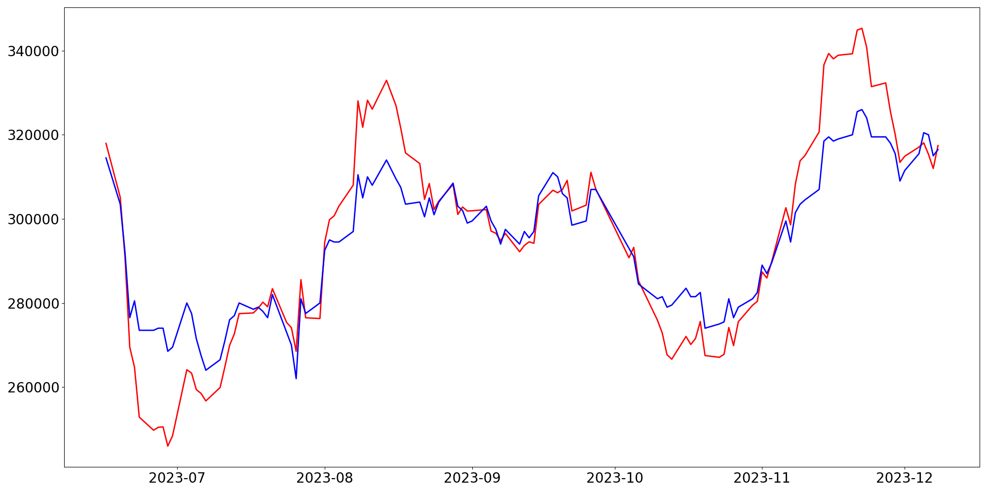 [ - : 실제값(종가) / - : 예측값(종가) ]