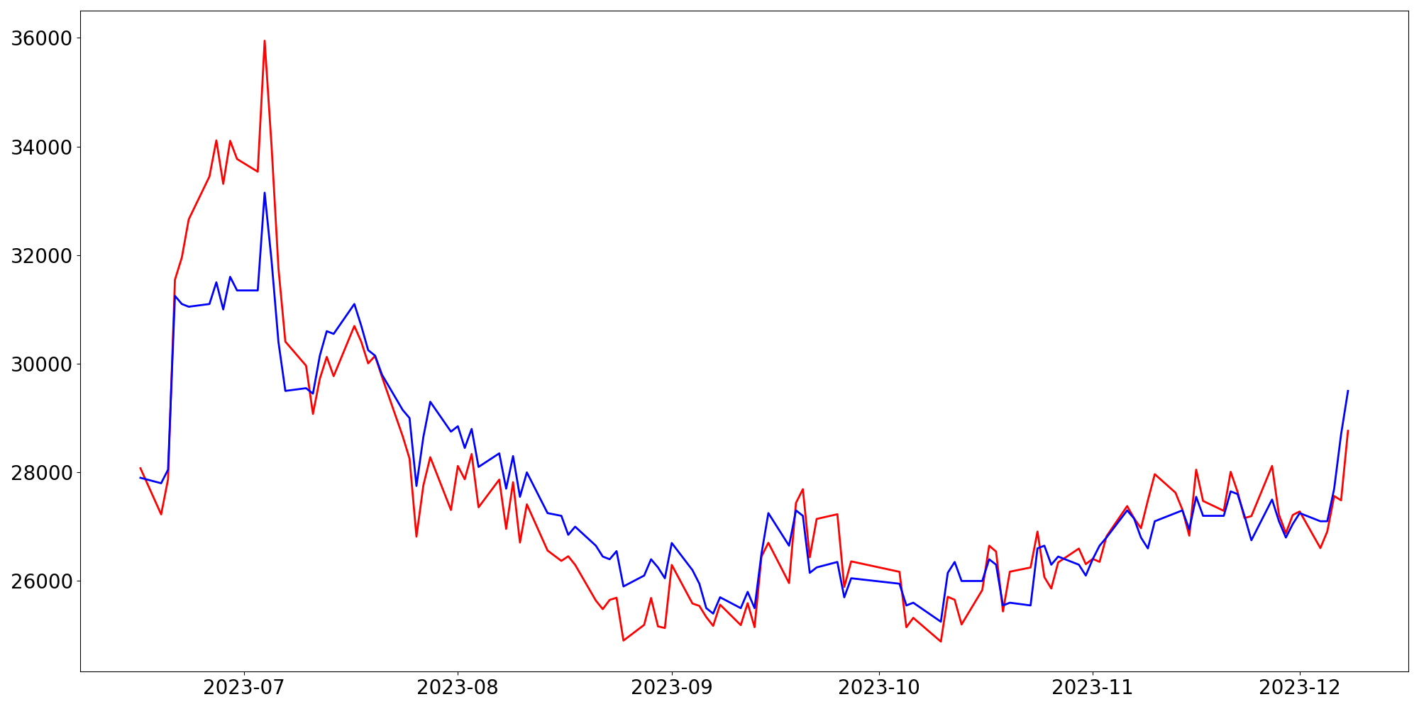 [ - : 실제값(종가) / - : 예측값(종가) ]