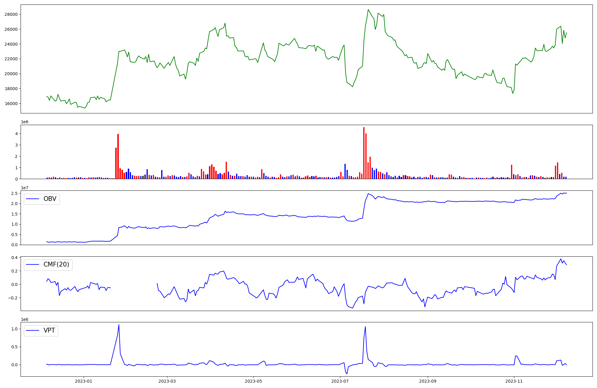 | OBV | CMF | VPT | |