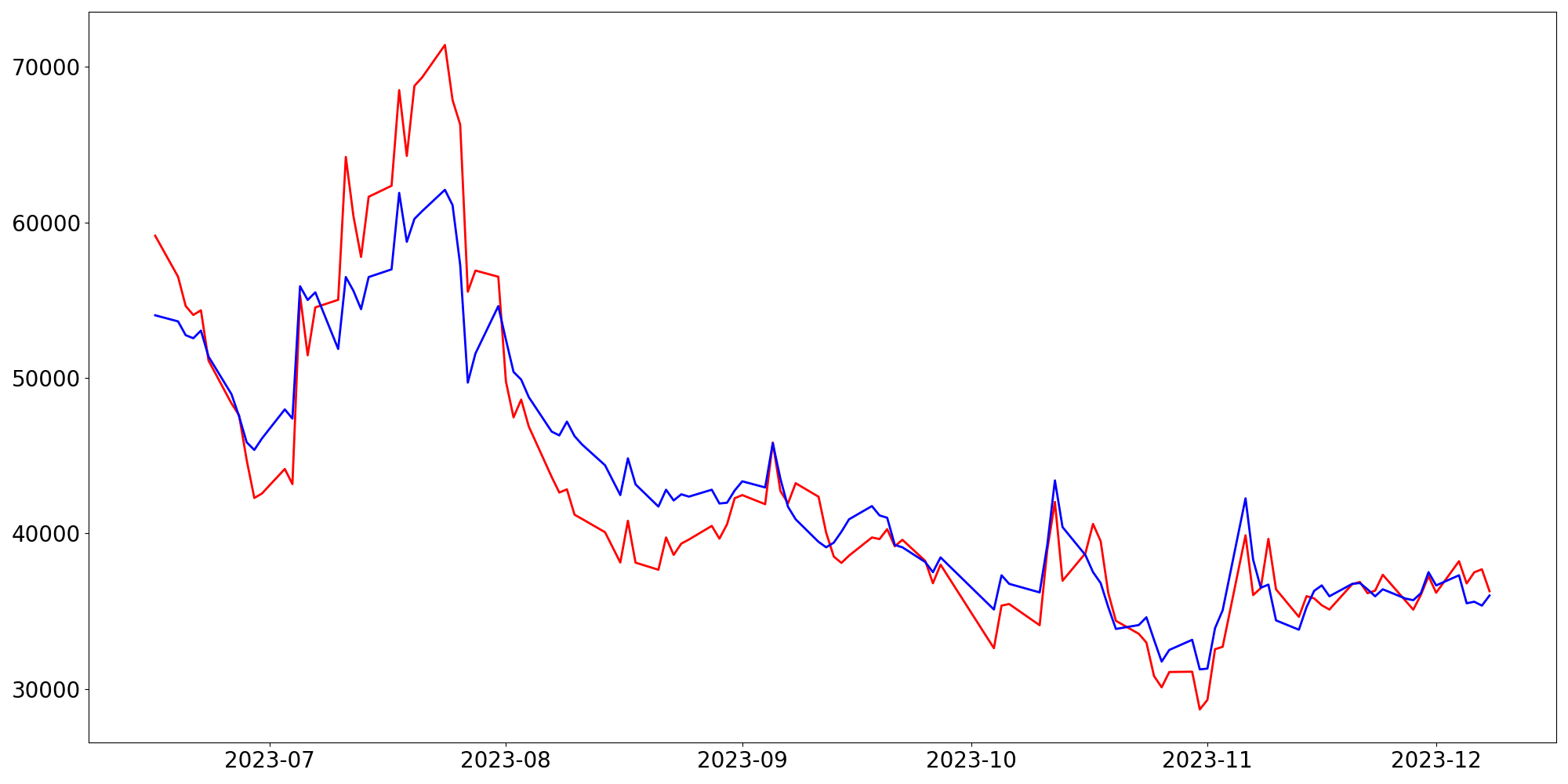 [ - : 실제값(종가) / - : 예측값(종가) ]