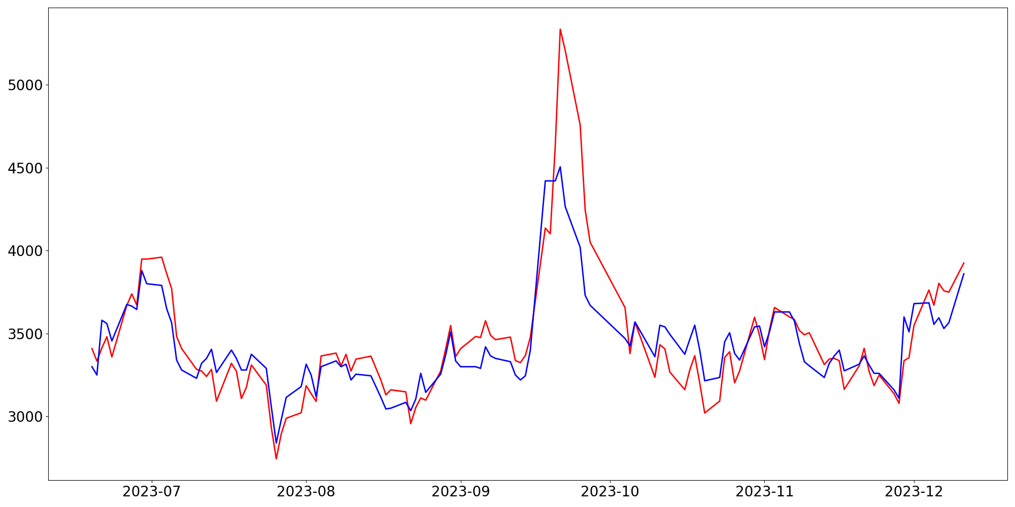 [ - : 실제값(종가) / - : 예측값(종가) ]