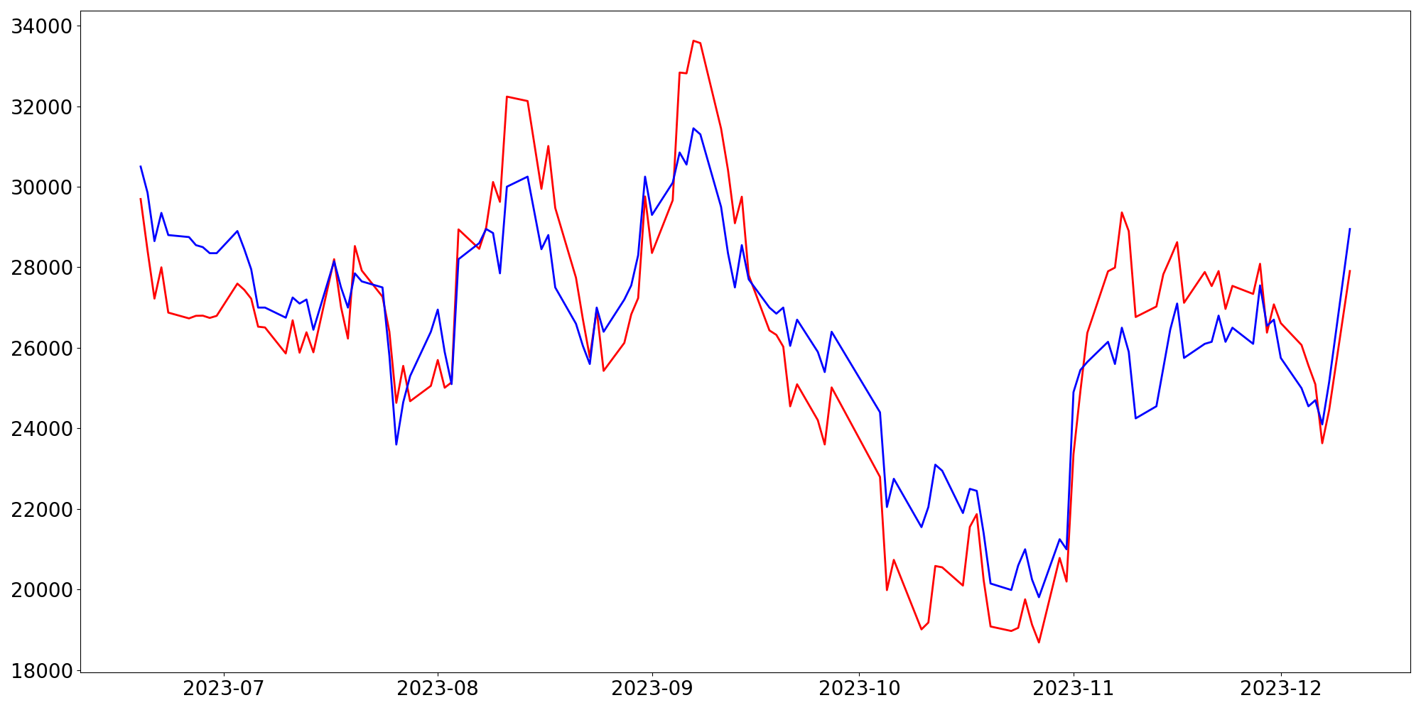 [ - : 실제값(종가) / - : 예측값(종가) ]