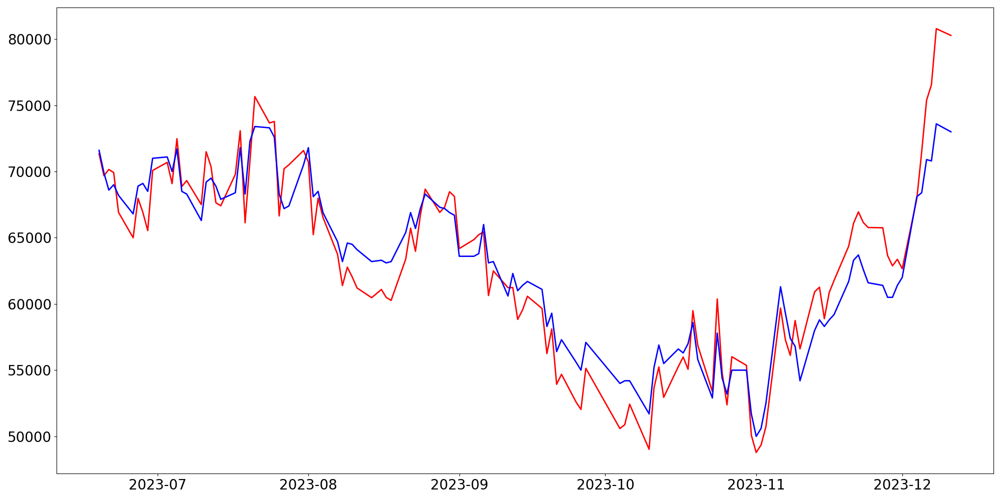 [ - : 실제값(종가) / - : 예측값(종가) ]