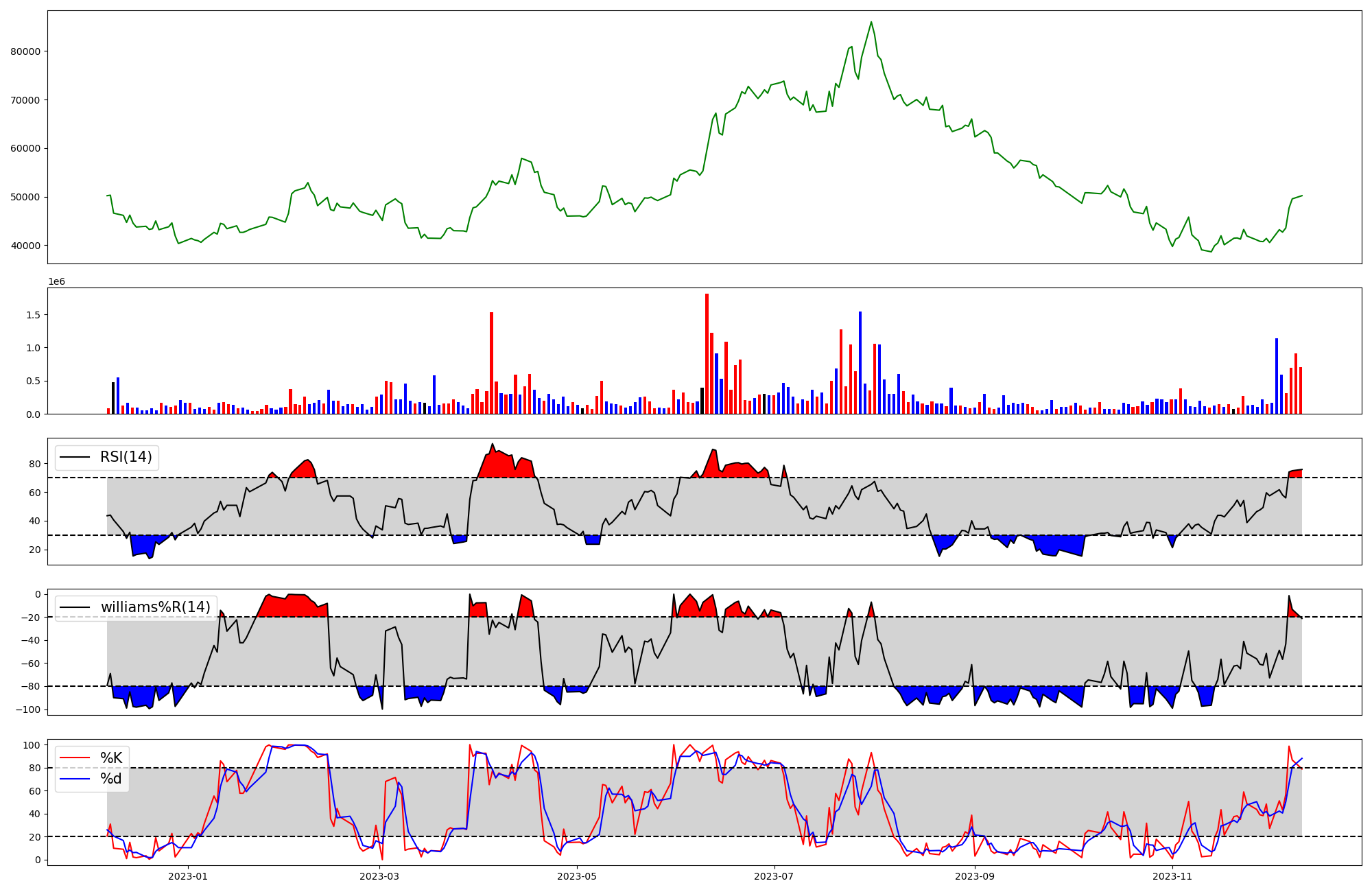 | RSI | Williams %R | stochastic(%K) | |