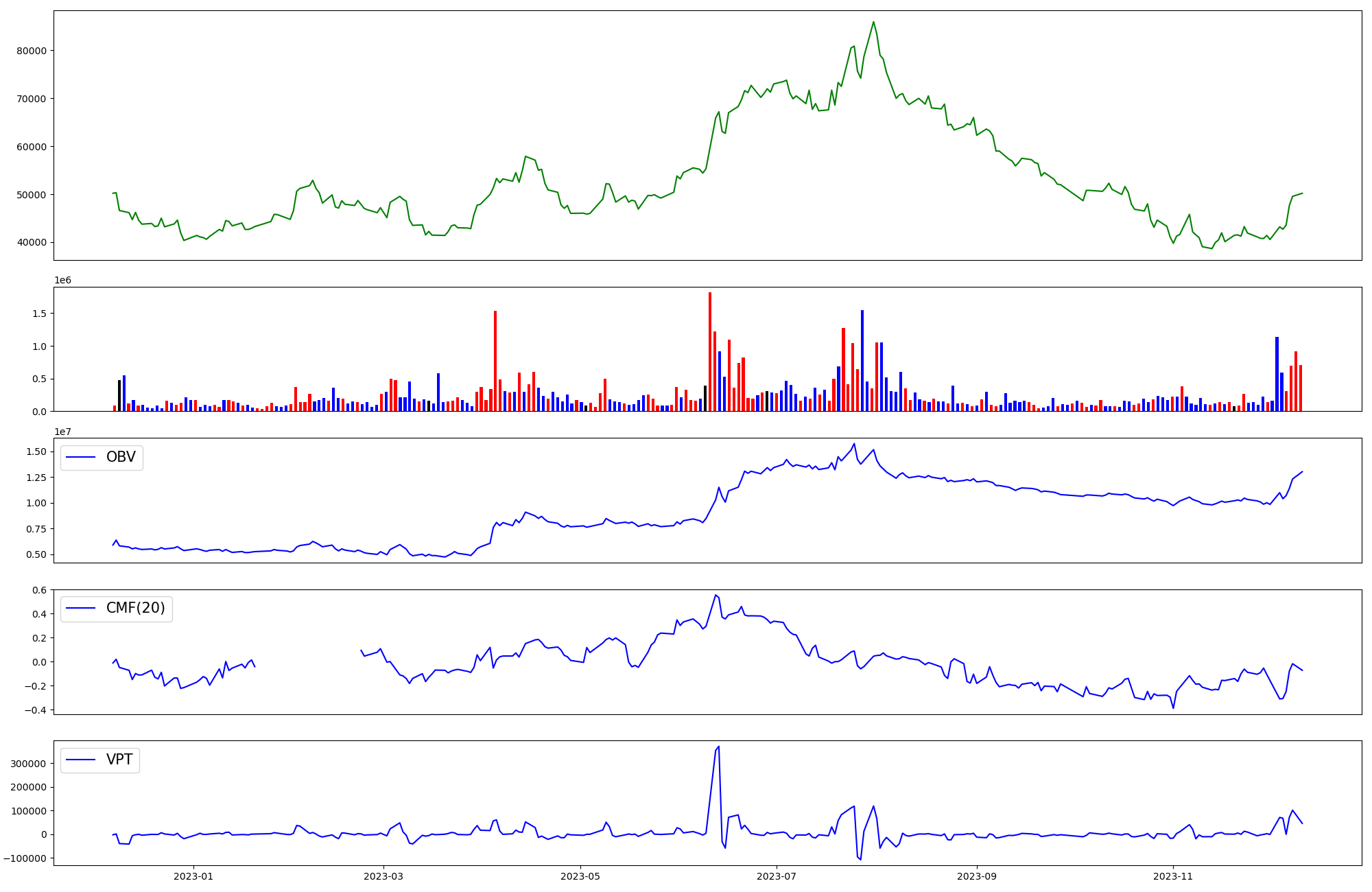 | OBV | CMF | VPT | |