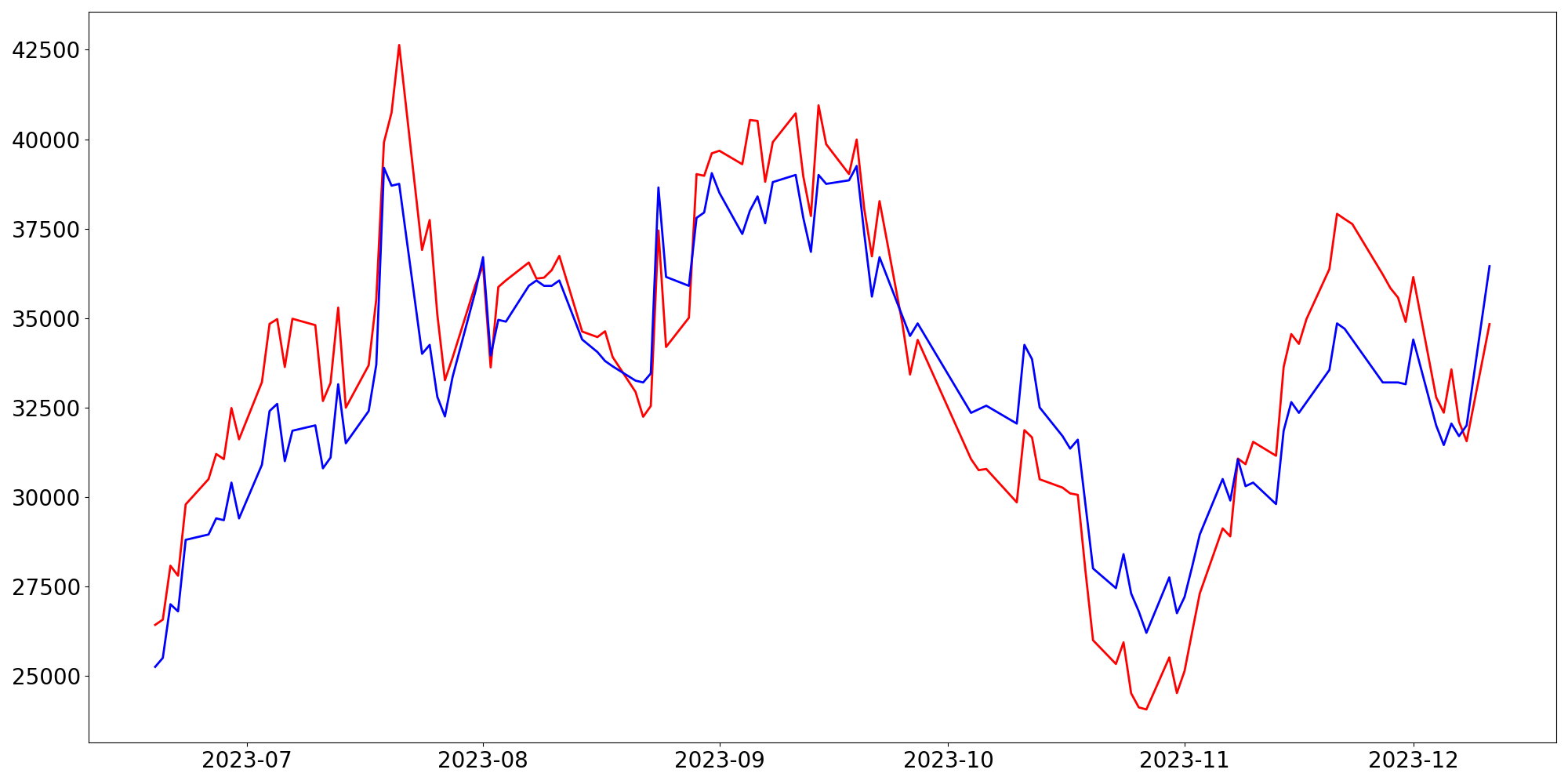 [ - : 실제값(종가) / - : 예측값(종가) ]