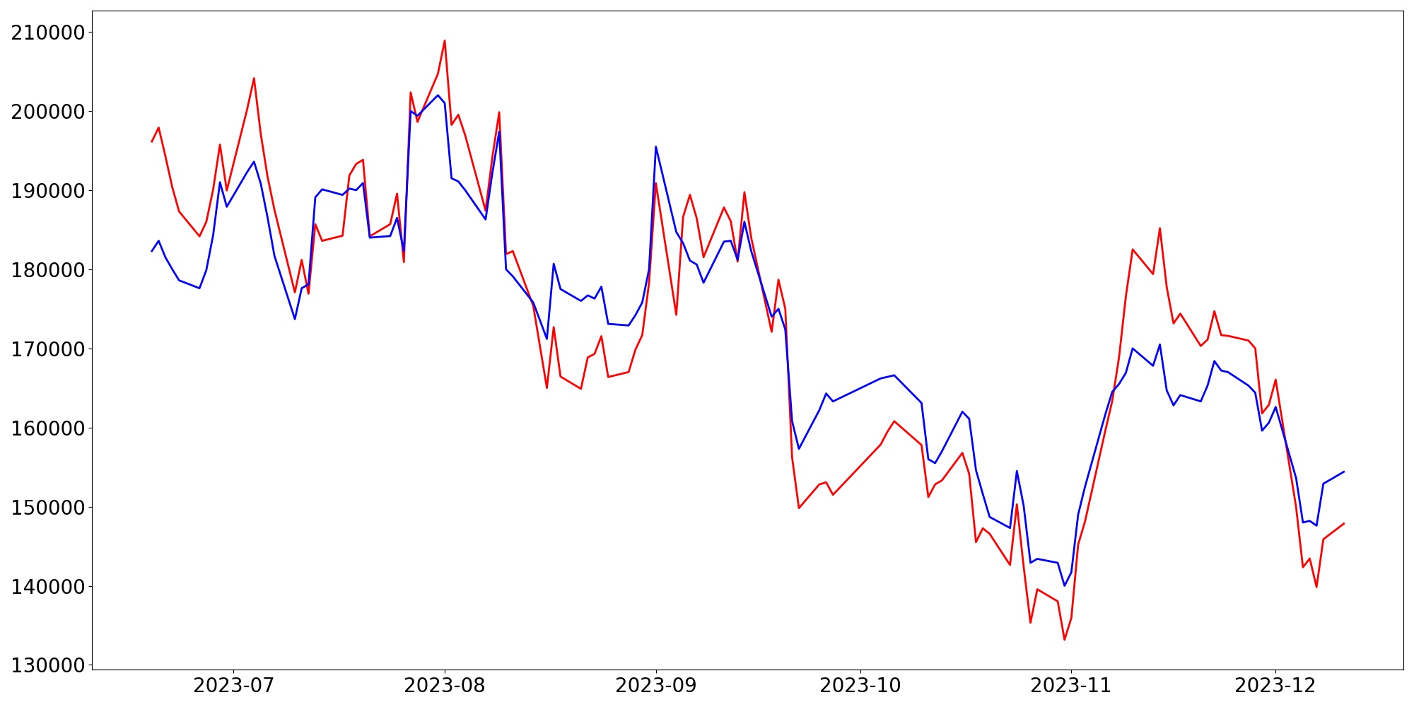 [ - : 실제값(종가) / - : 예측값(종가) ]