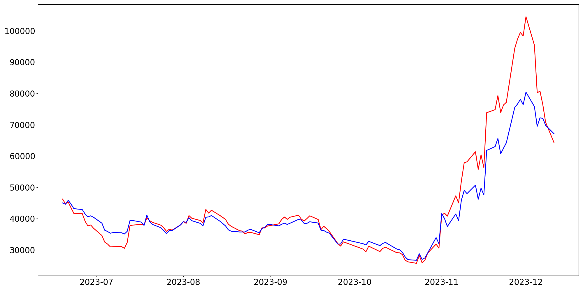 [ - : 실제값(종가) / - : 예측값(종가) ]