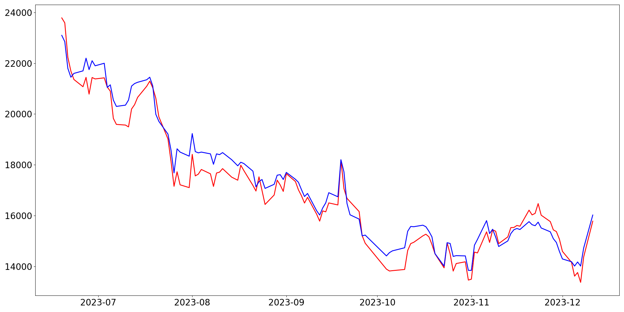 [ - : 실제값(종가) / - : 예측값(종가) ]