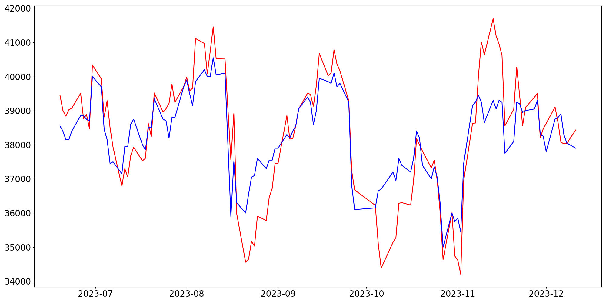 [ - : 실제값(종가) / - : 예측값(종가) ]