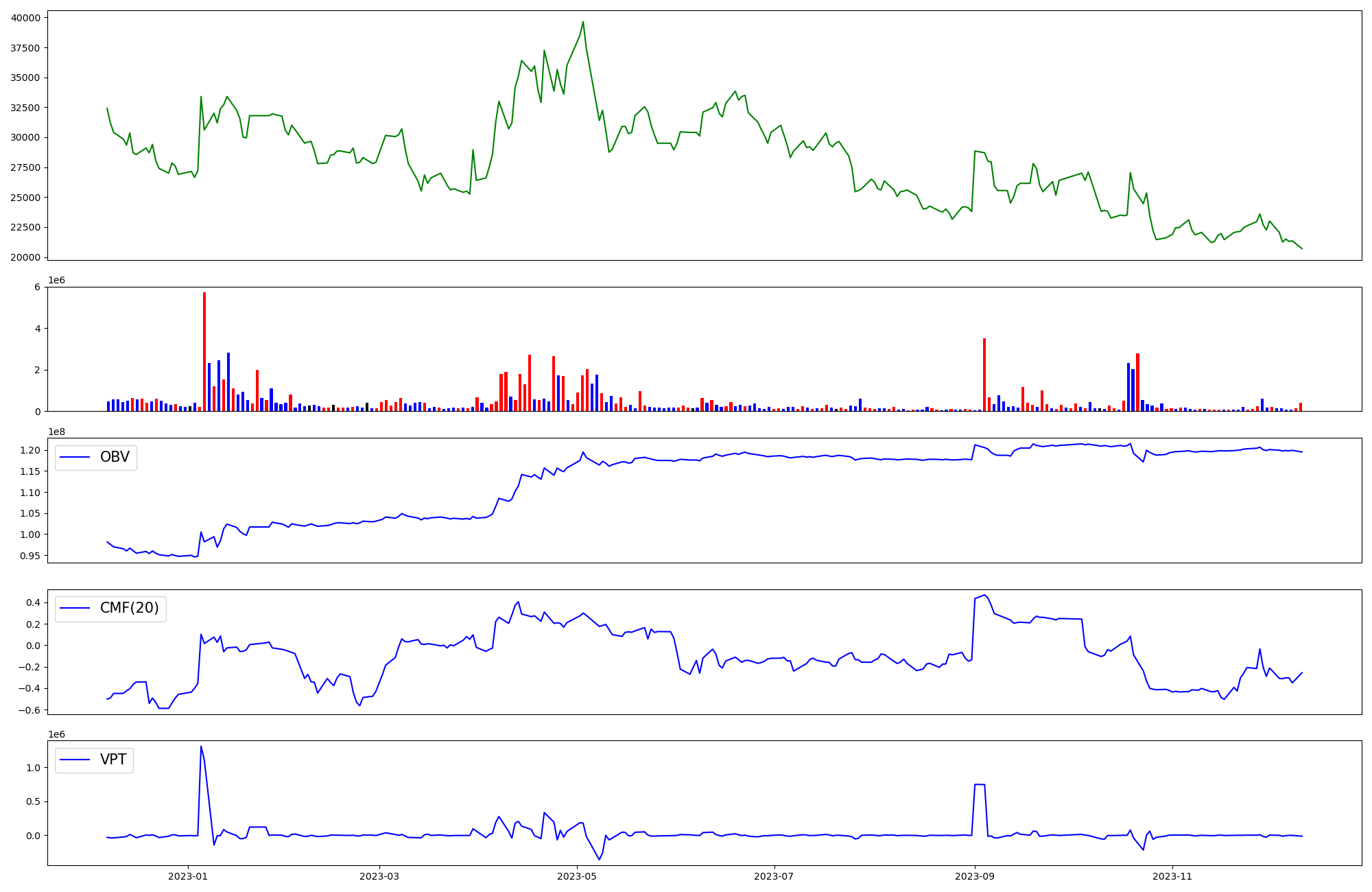 | OBV | CMF | VPT | |