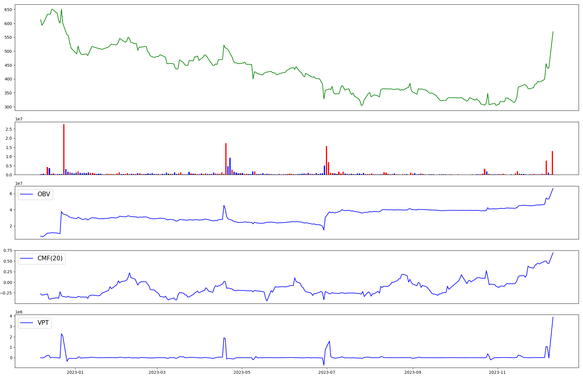 | OBV | CMF | VPT | |