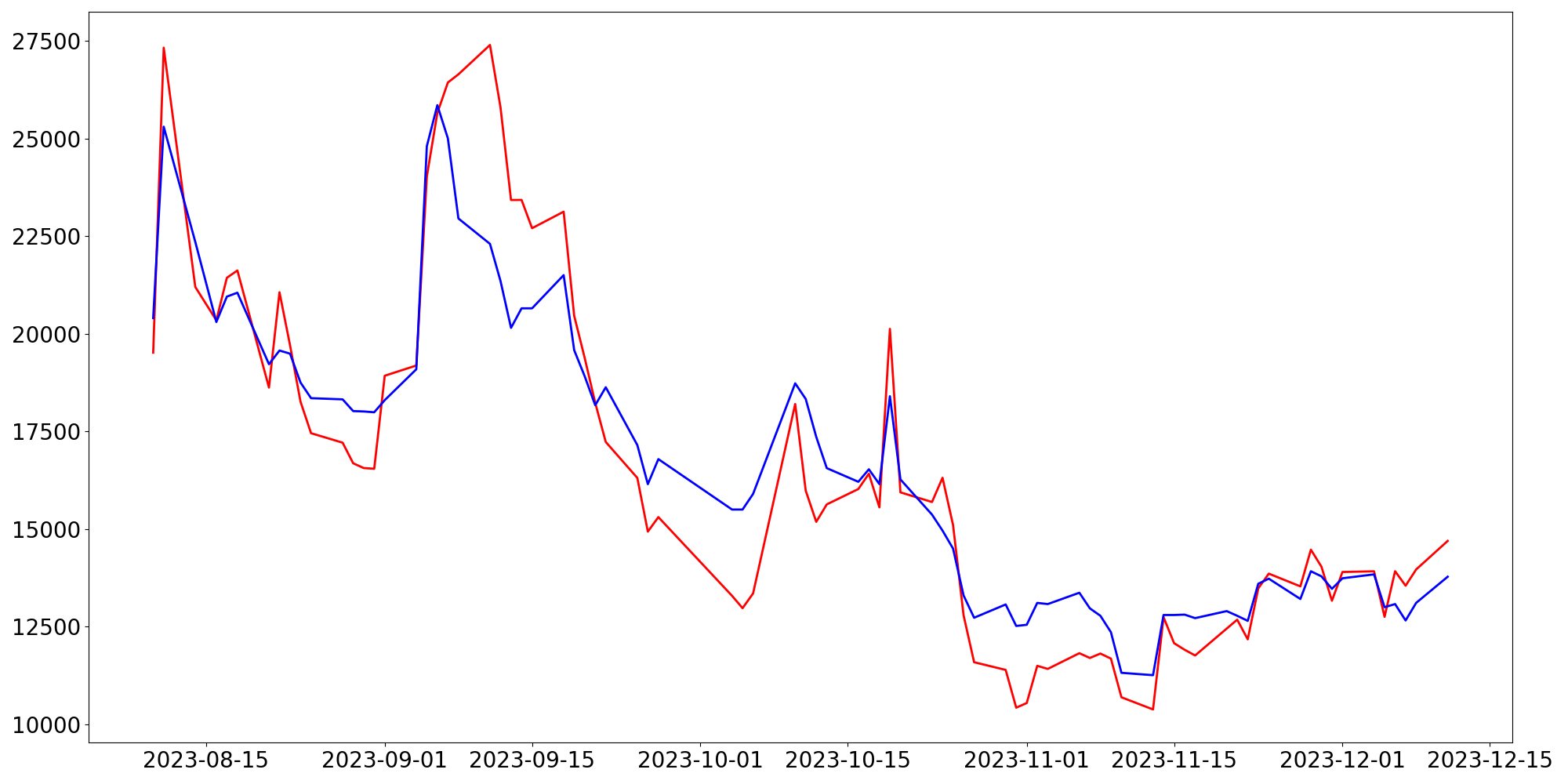 [ - : 실제값(종가) / - : 예측값(종가) ]