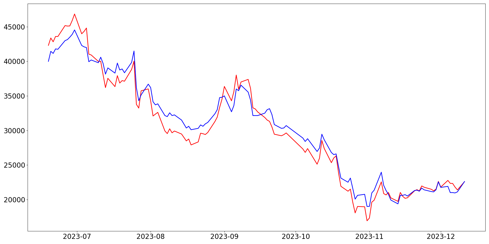 [ - : 실제값(종가) / - : 예측값(종가) ]