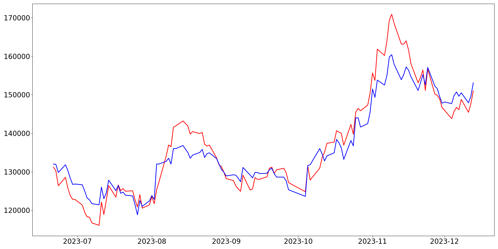 [ - : 실제값(종가) / - : 예측값(종가) ]