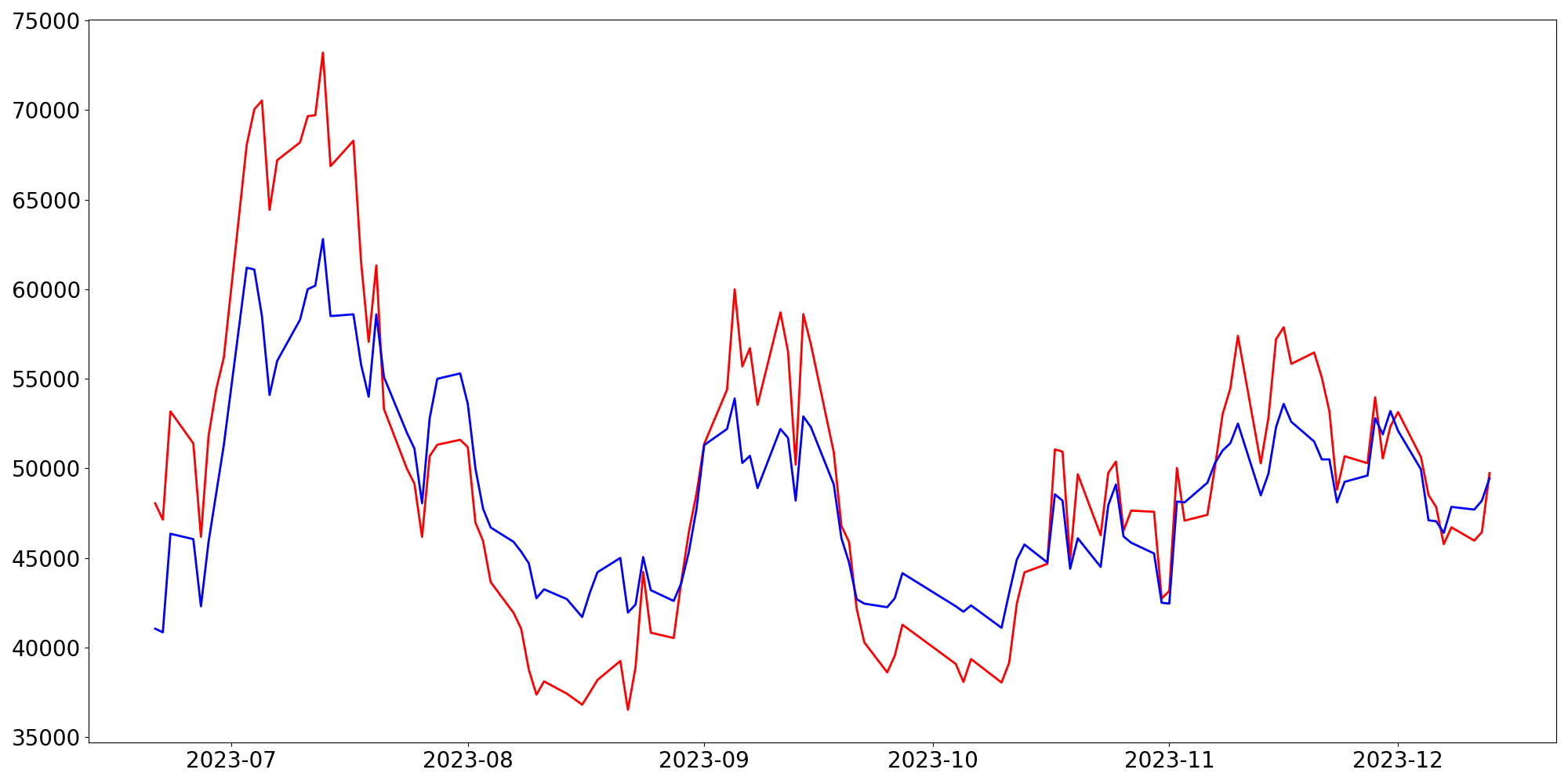 [ - : 실제값(종가) / - : 예측값(종가) ]