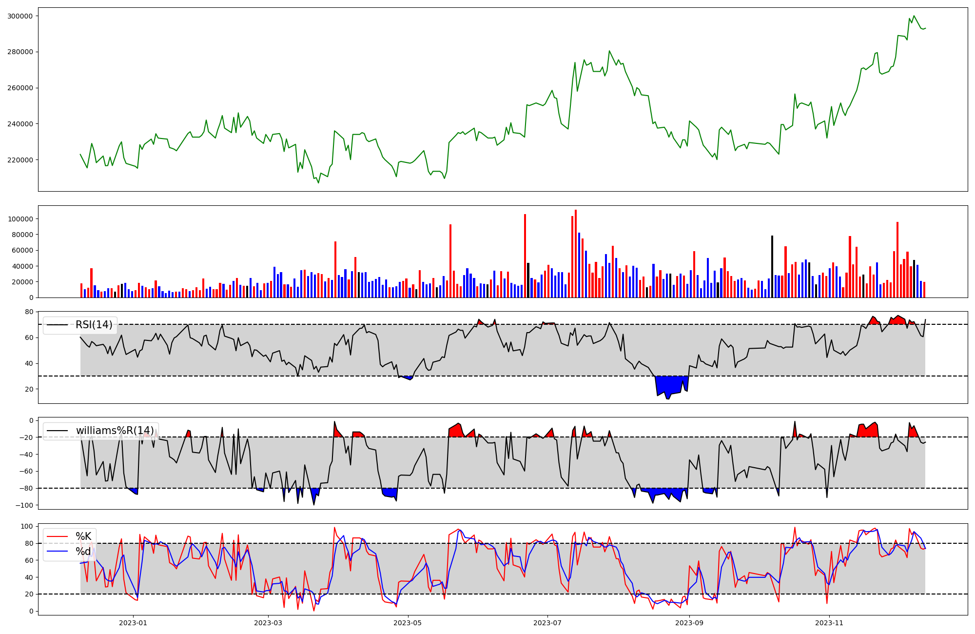 | RSI | Williams %R | stochastic(%K) | |