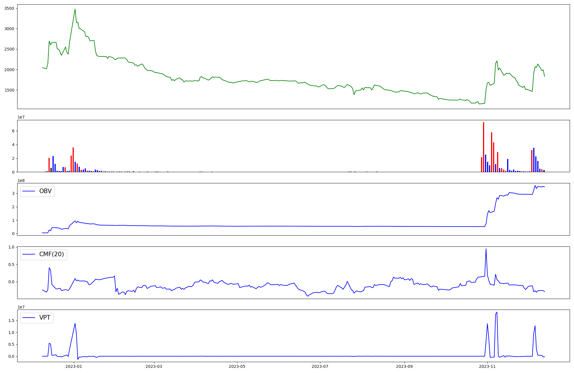 | OBV | CMF | VPT | |