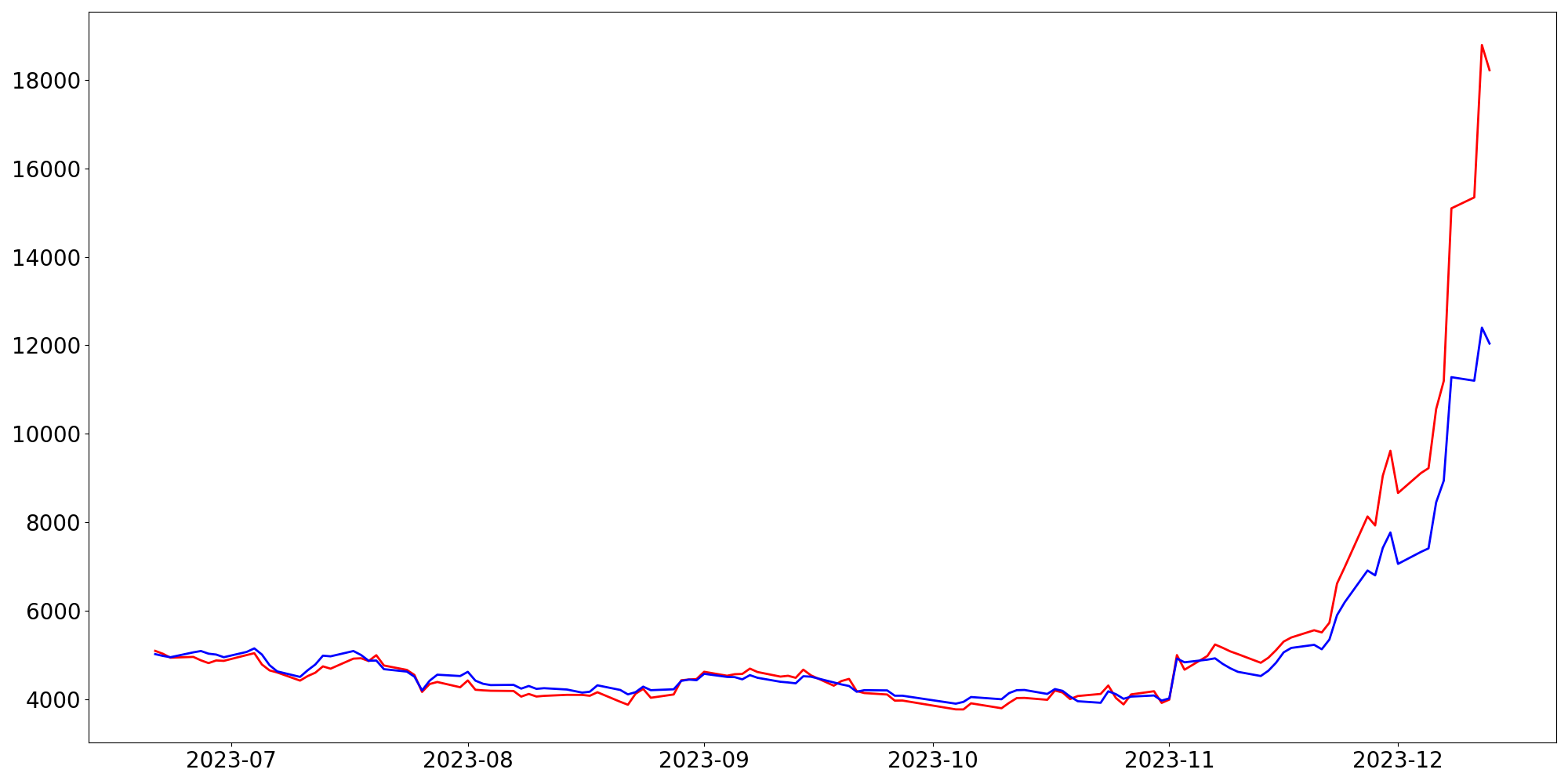 [ - : 실제값(종가) / - : 예측값(종가) ]