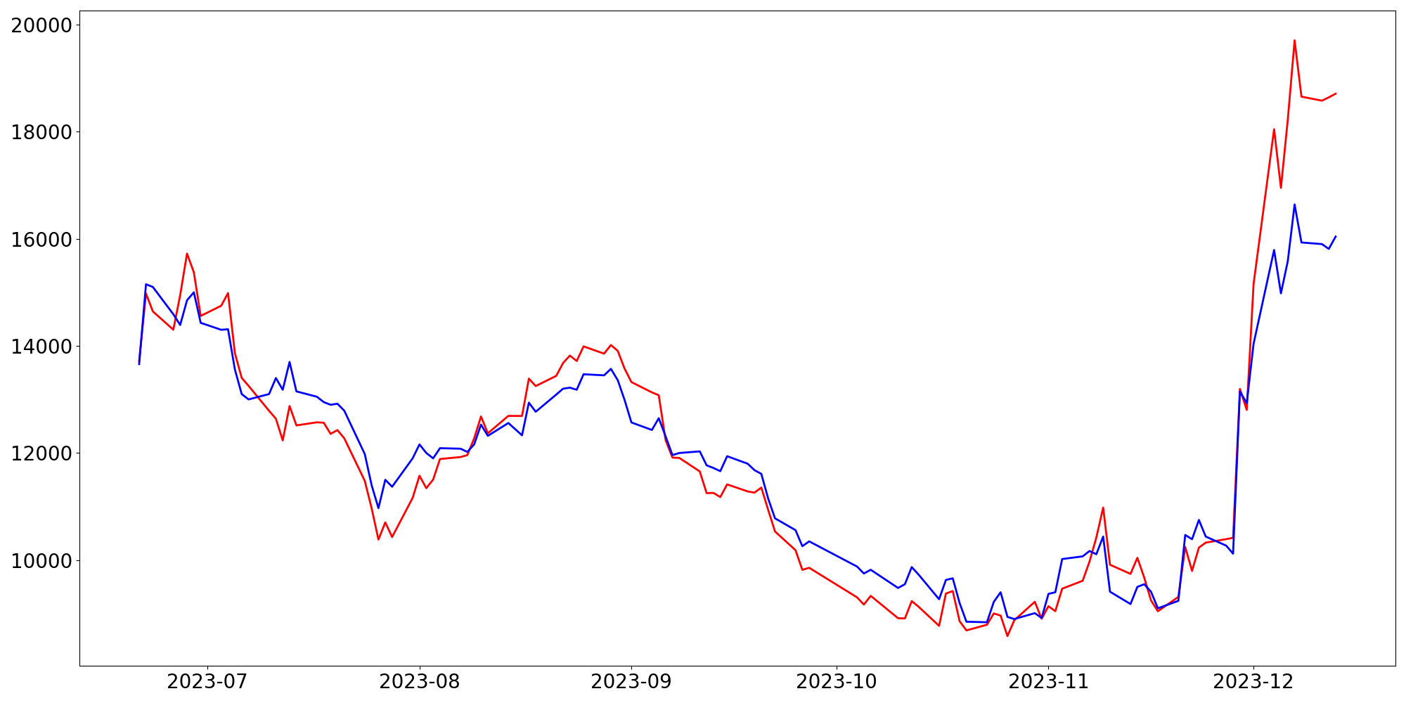 [ - : 실제값(종가) / - : 예측값(종가) ]