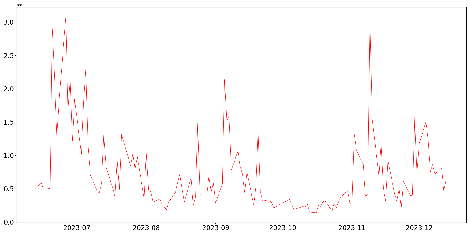 일별 공매도 거래량 추이를 그래프로 나타낸 것으로 공매도 거래량이 증가할 수록 단기적으로 가격 하락을 예측하는 시장참가자가 증거하는 것으로 판단해 볼 수 있습니다.