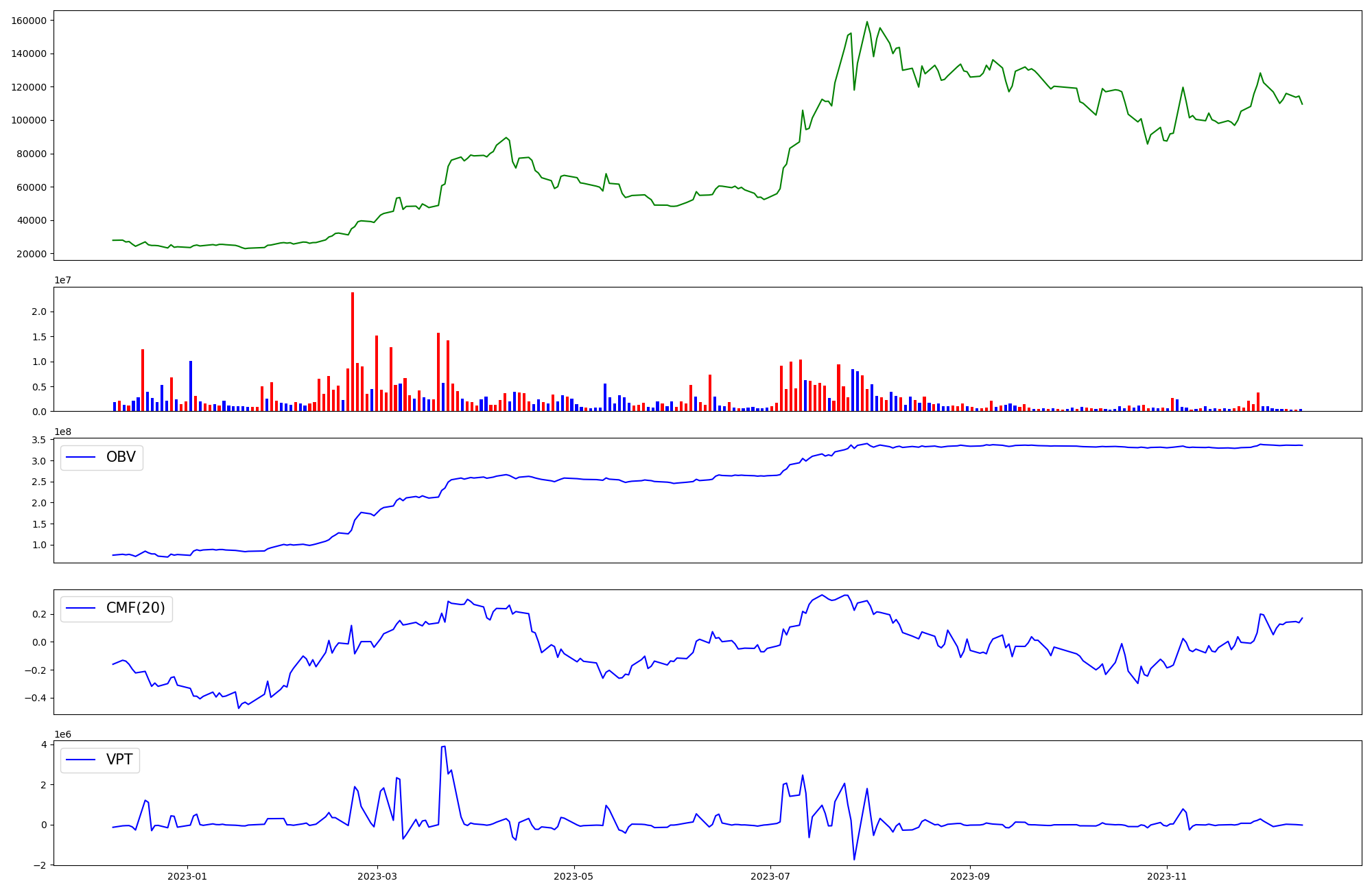 | OBV | CMF | VPT | |