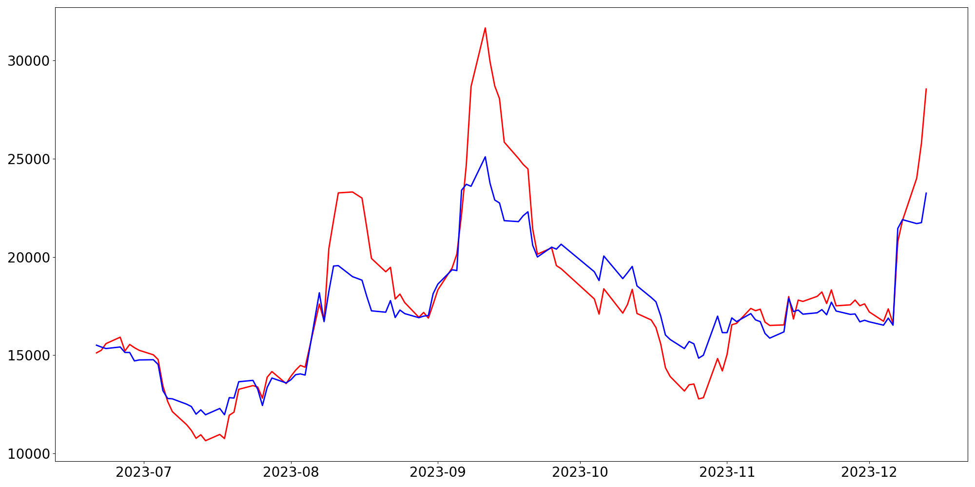 [ - : 실제값(종가) / - : 예측값(종가) ]