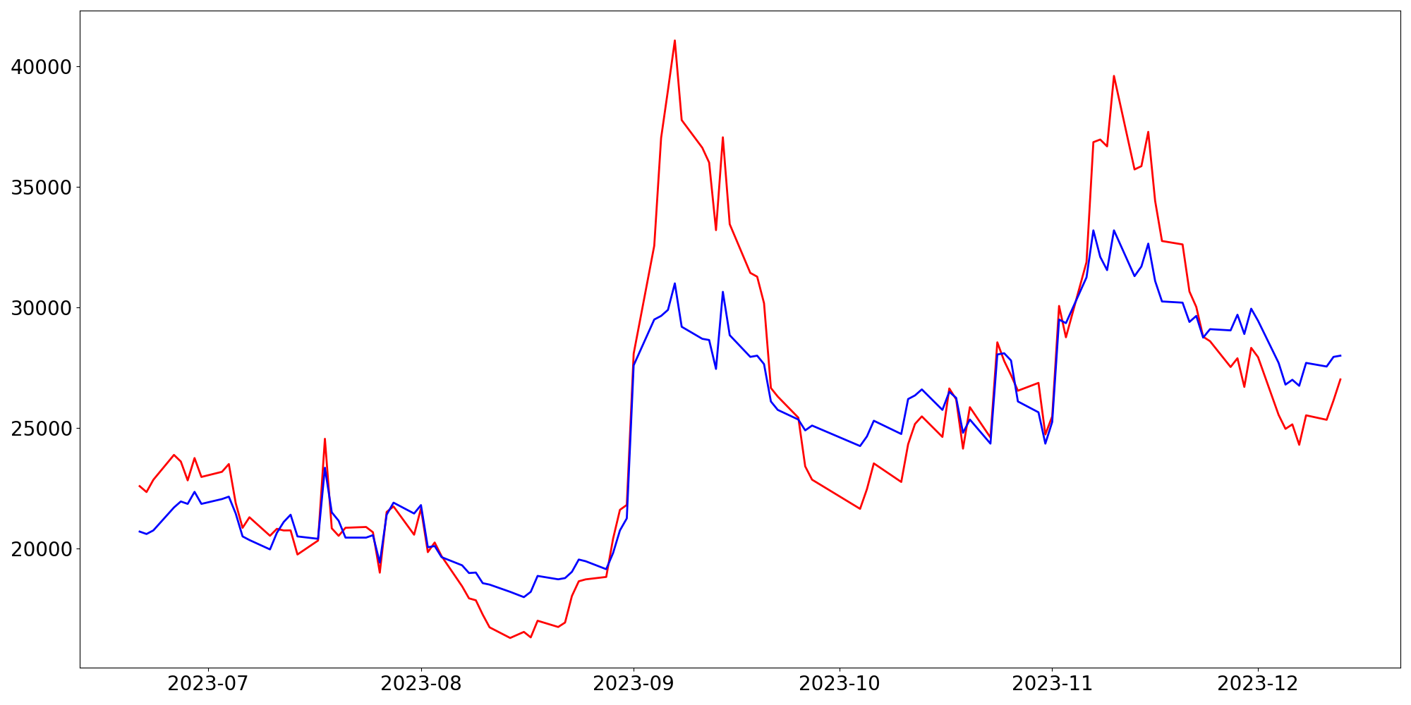 [ - : 실제값(종가) / - : 예측값(종가) ]