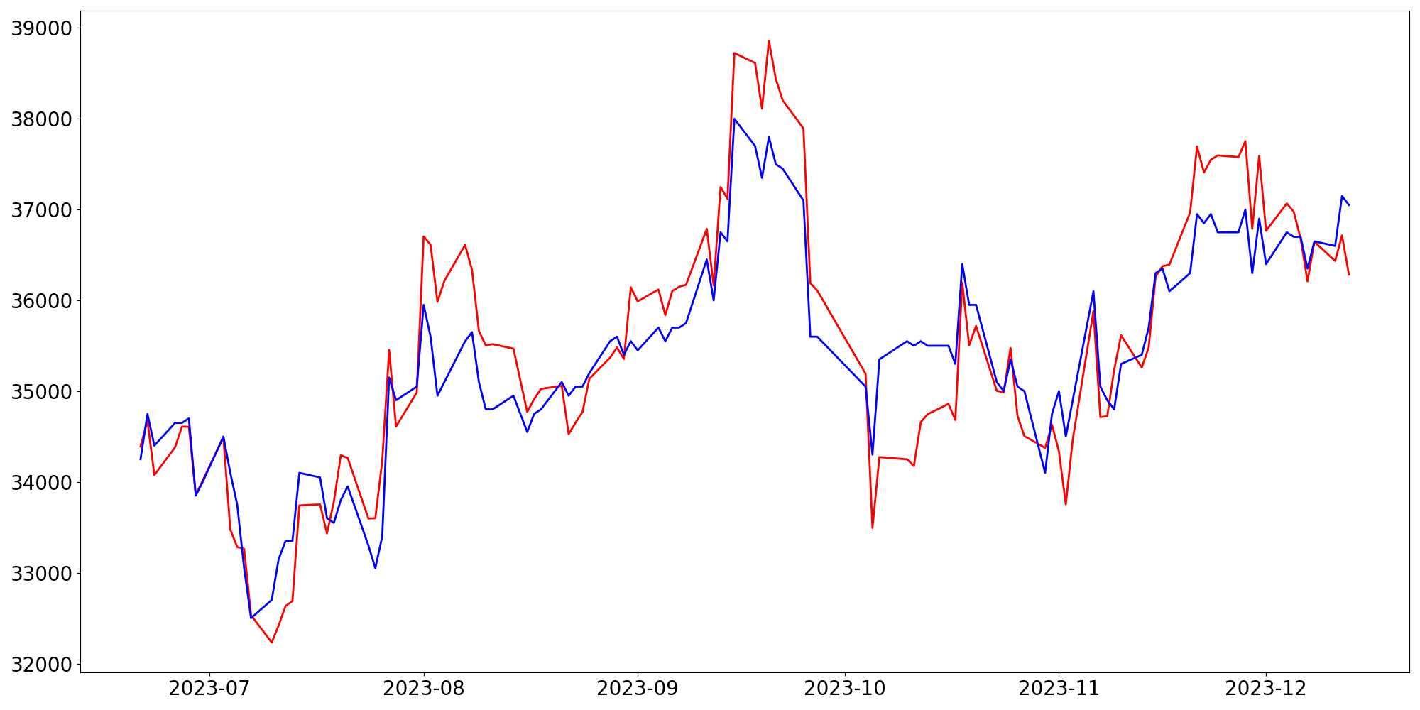 [ - : 실제값(종가) / - : 예측값(종가) ]