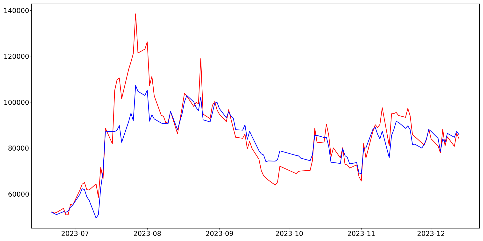 [ - : 실제값(종가) / - : 예측값(종가) ]