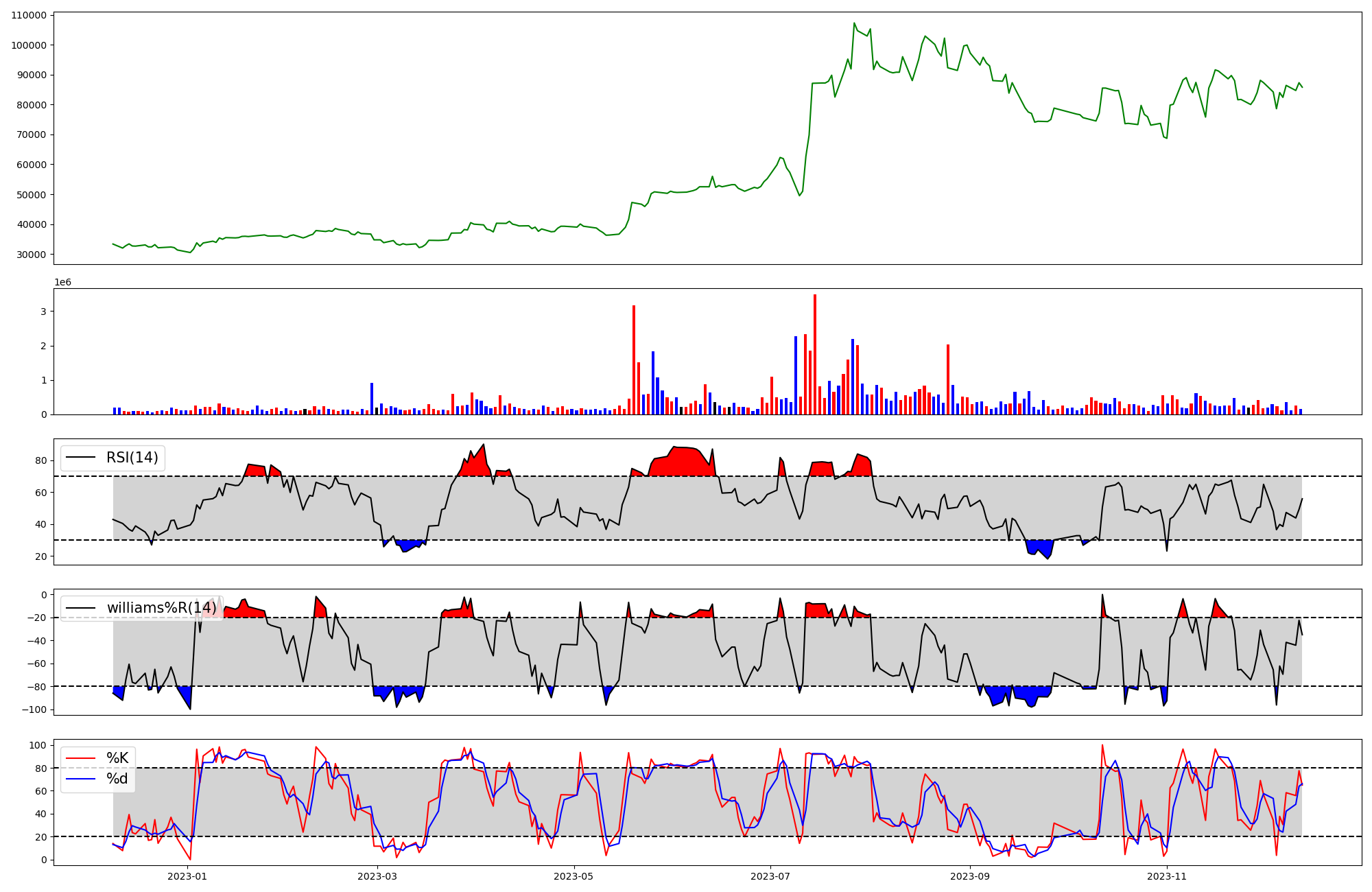 | RSI | Williams %R | stochastic(%K) | |