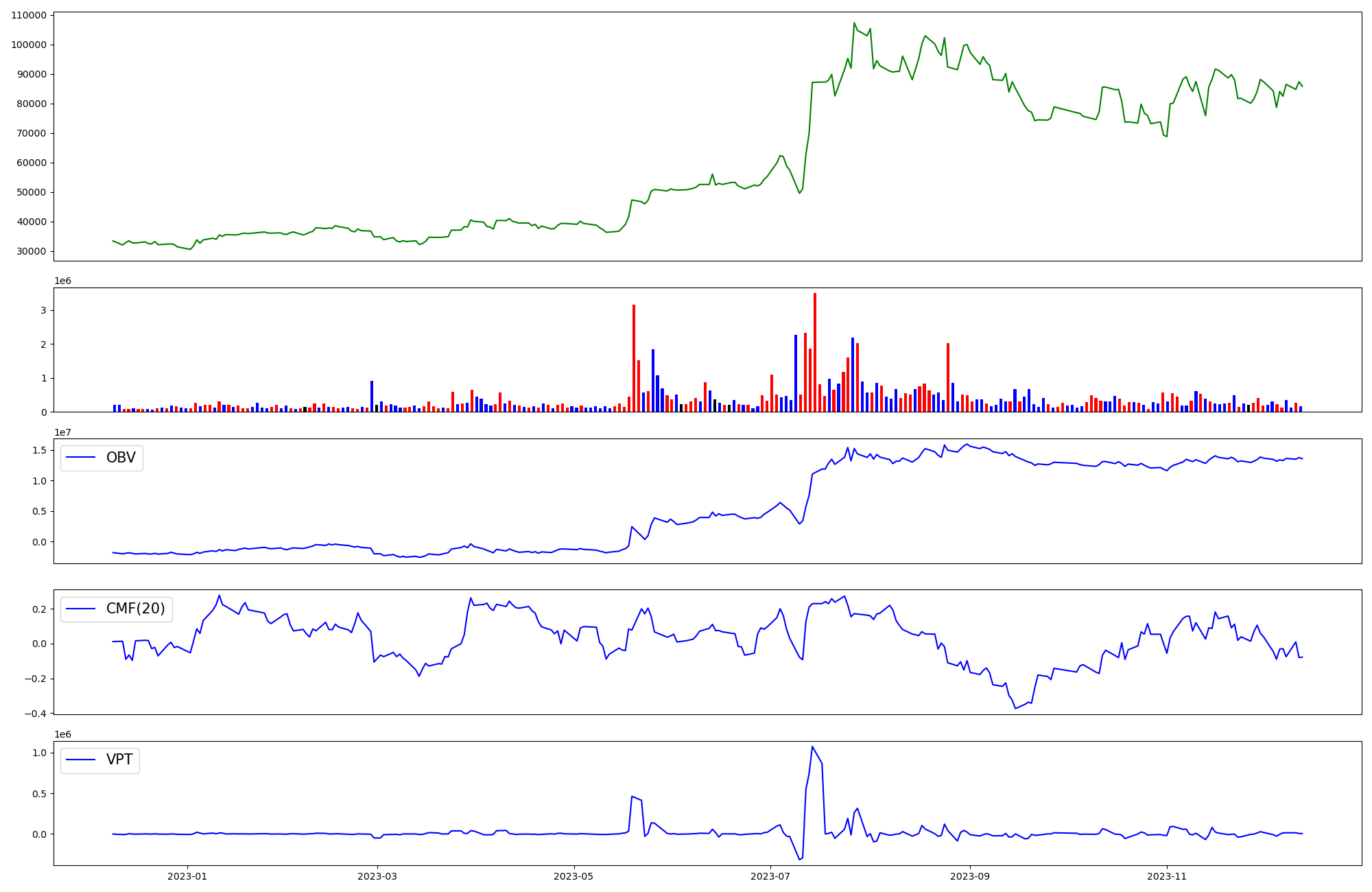 | OBV | CMF | VPT | |