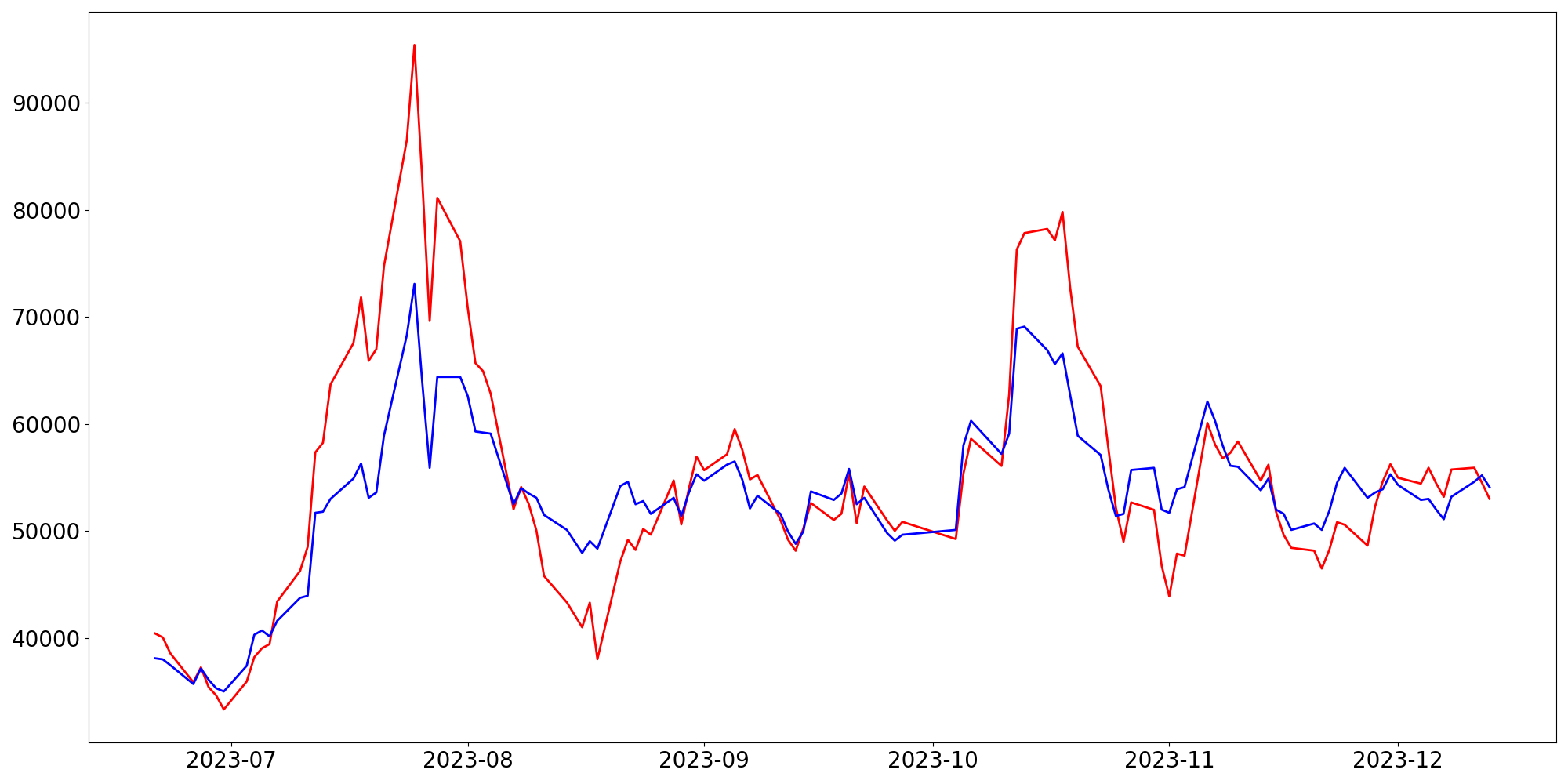 [ - : 실제값(종가) / - : 예측값(종가) ]
