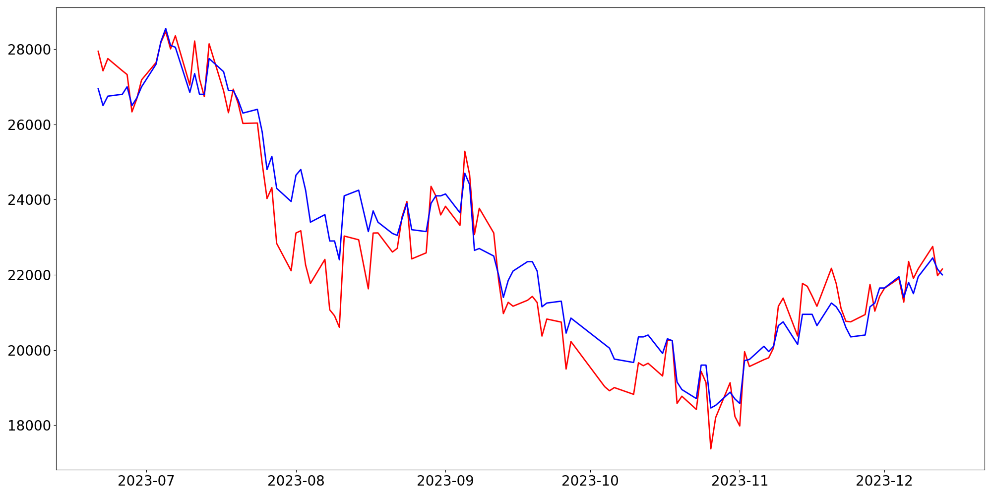 [ - : 실제값(종가) / - : 예측값(종가) ]