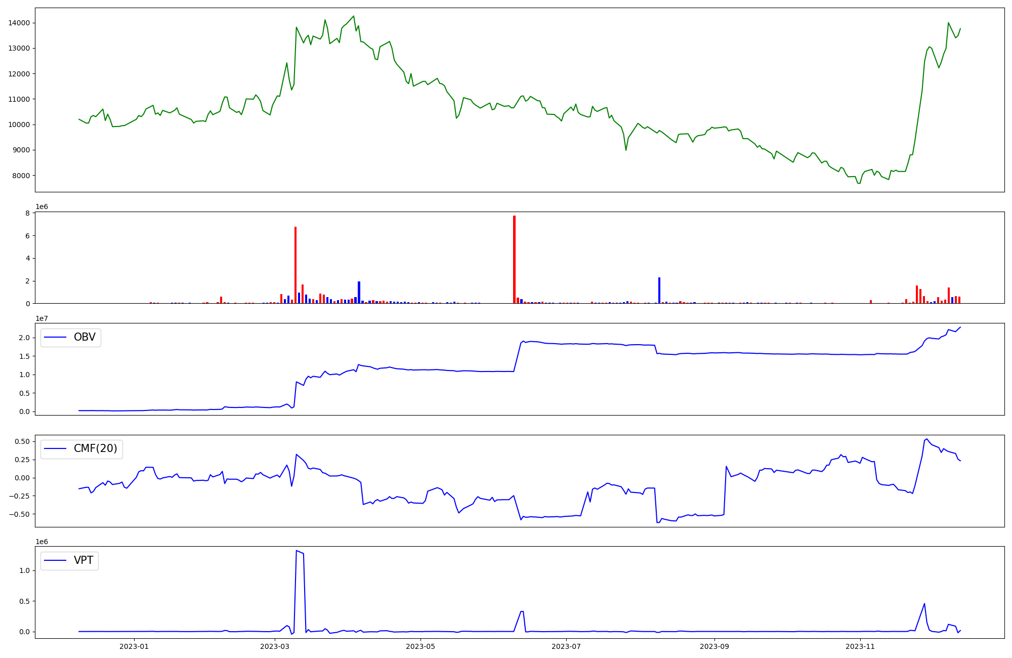 | OBV | CMF | VPT | |