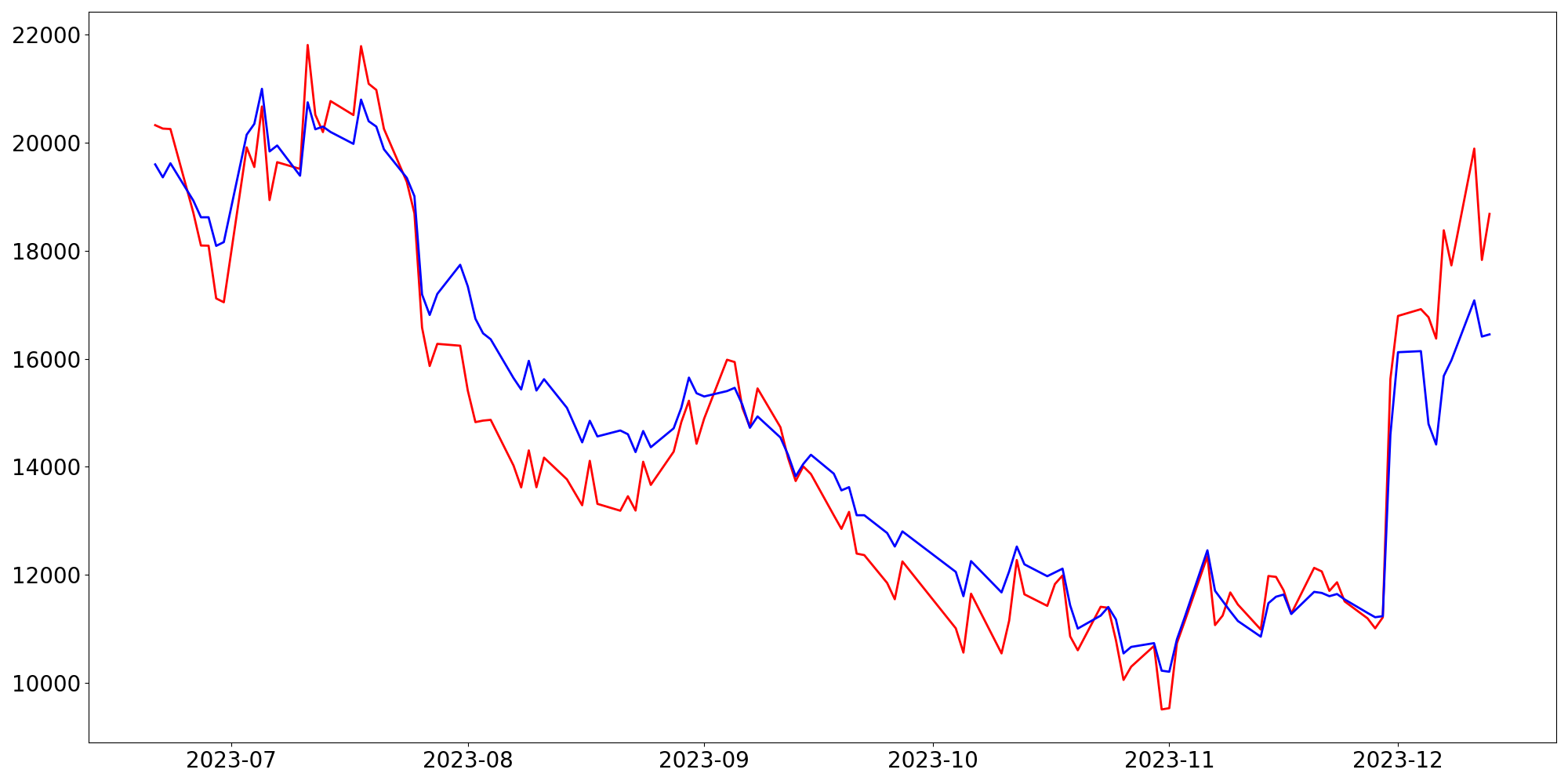 [ - : 실제값(종가) / - : 예측값(종가) ]
