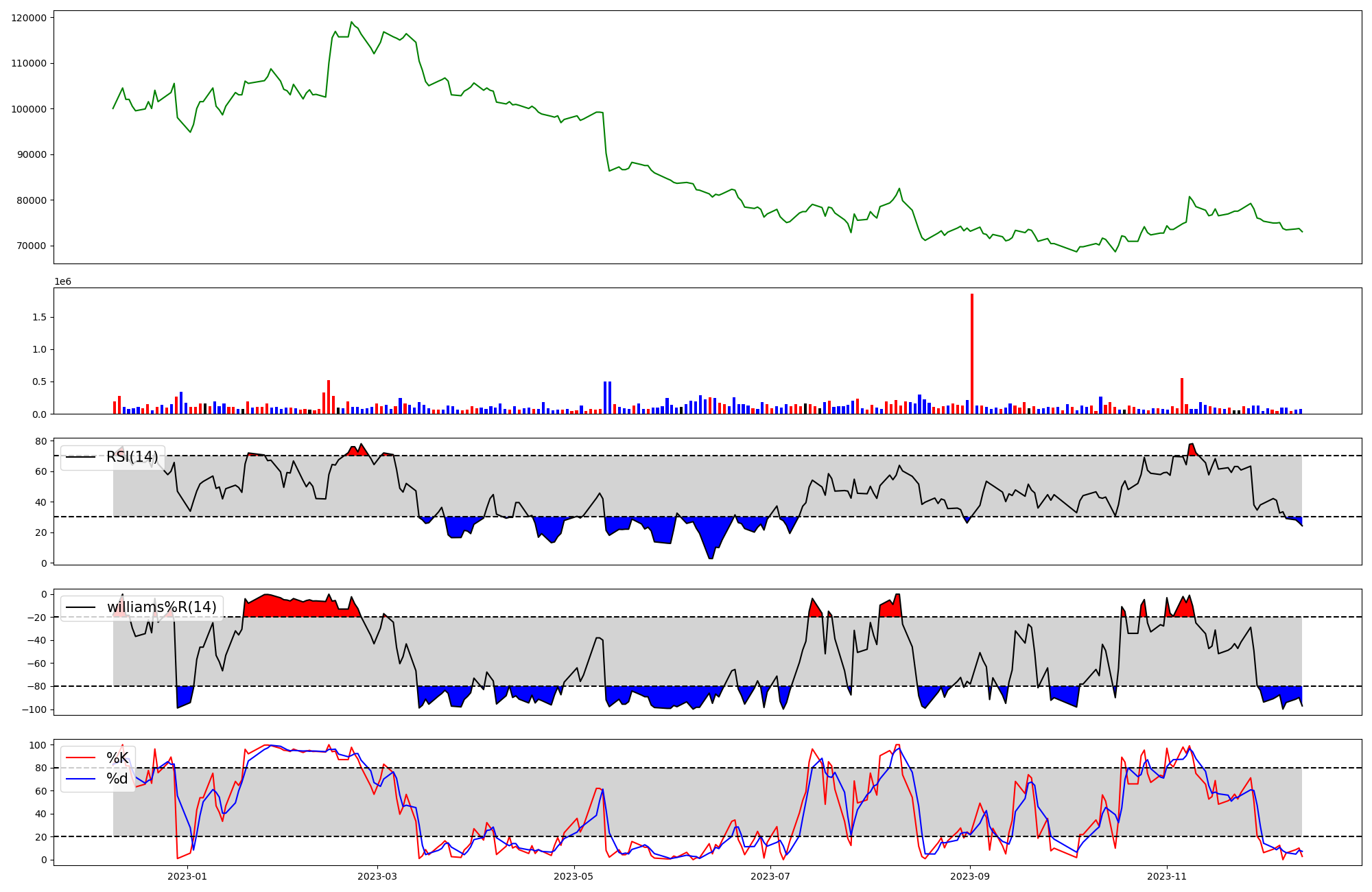 | RSI | Williams %R | stochastic(%K) | |