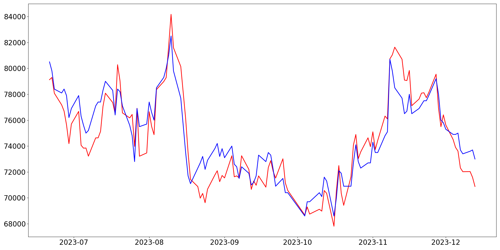 [ - : 실제값(종가) / - : 예측값(종가) ]