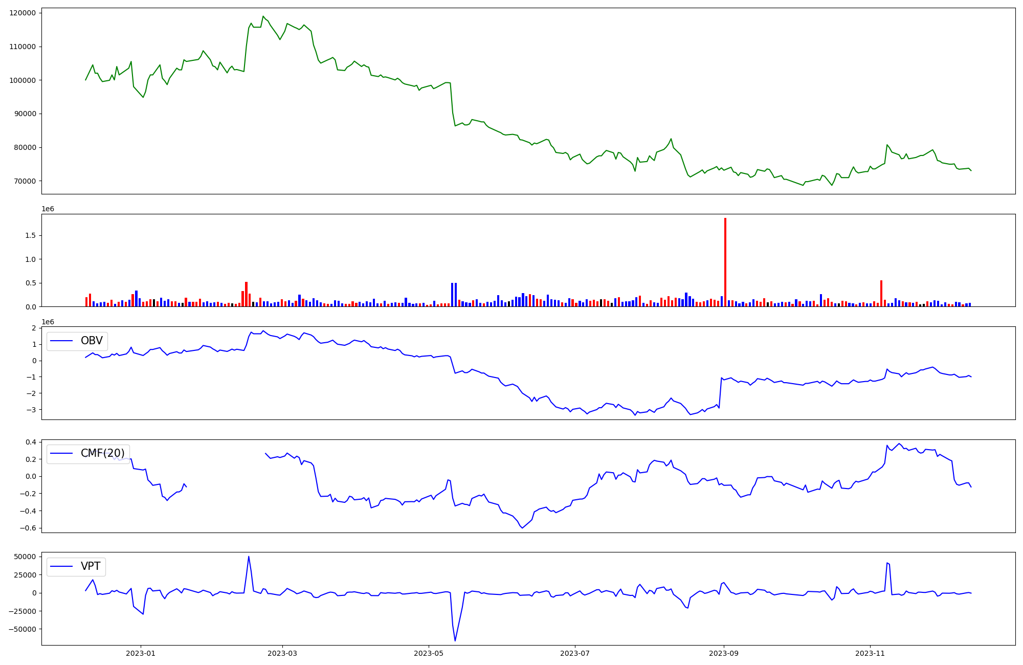 | OBV | CMF | VPT | |