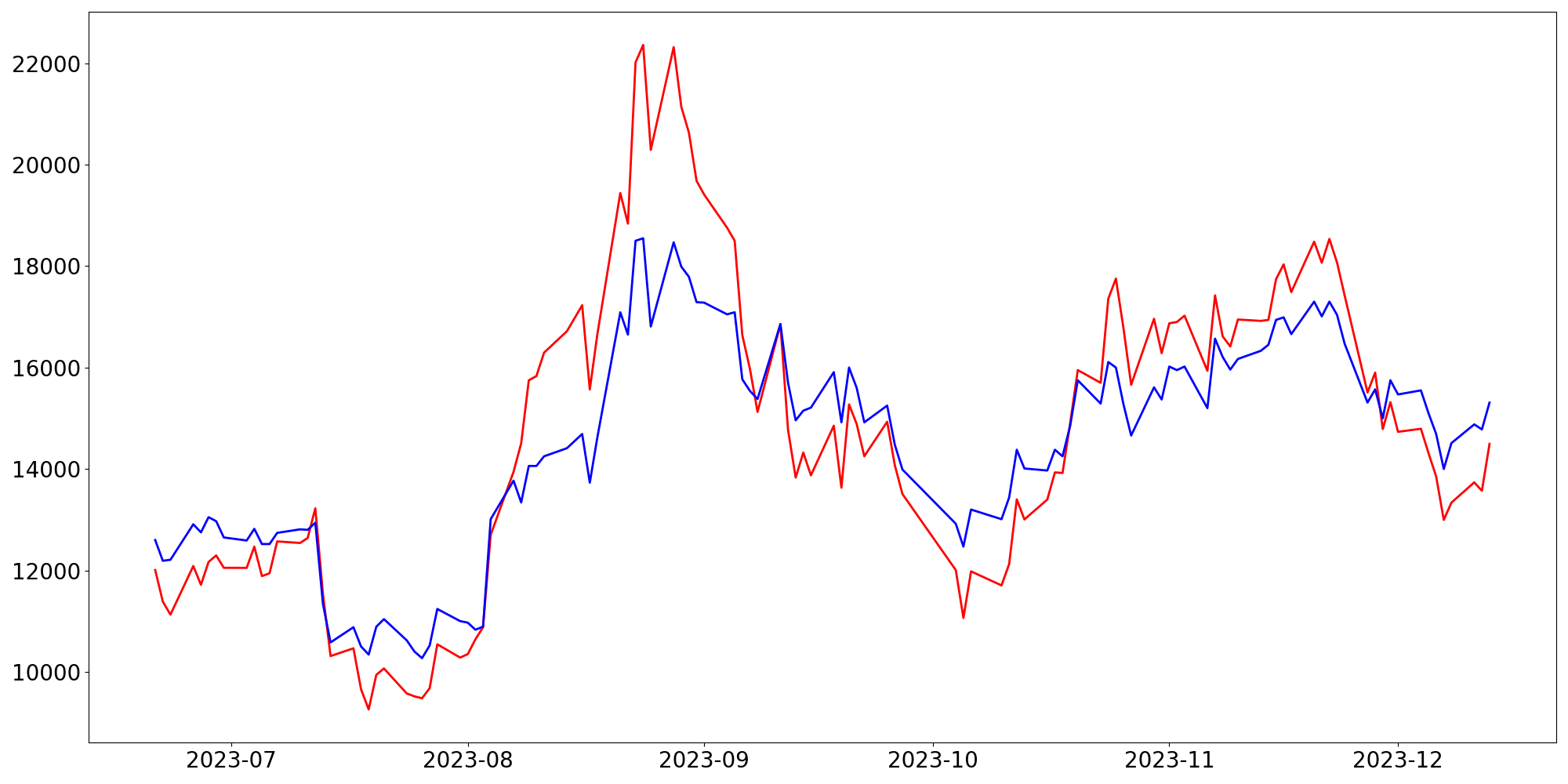 [ - : 실제값(종가) / - : 예측값(종가) ]