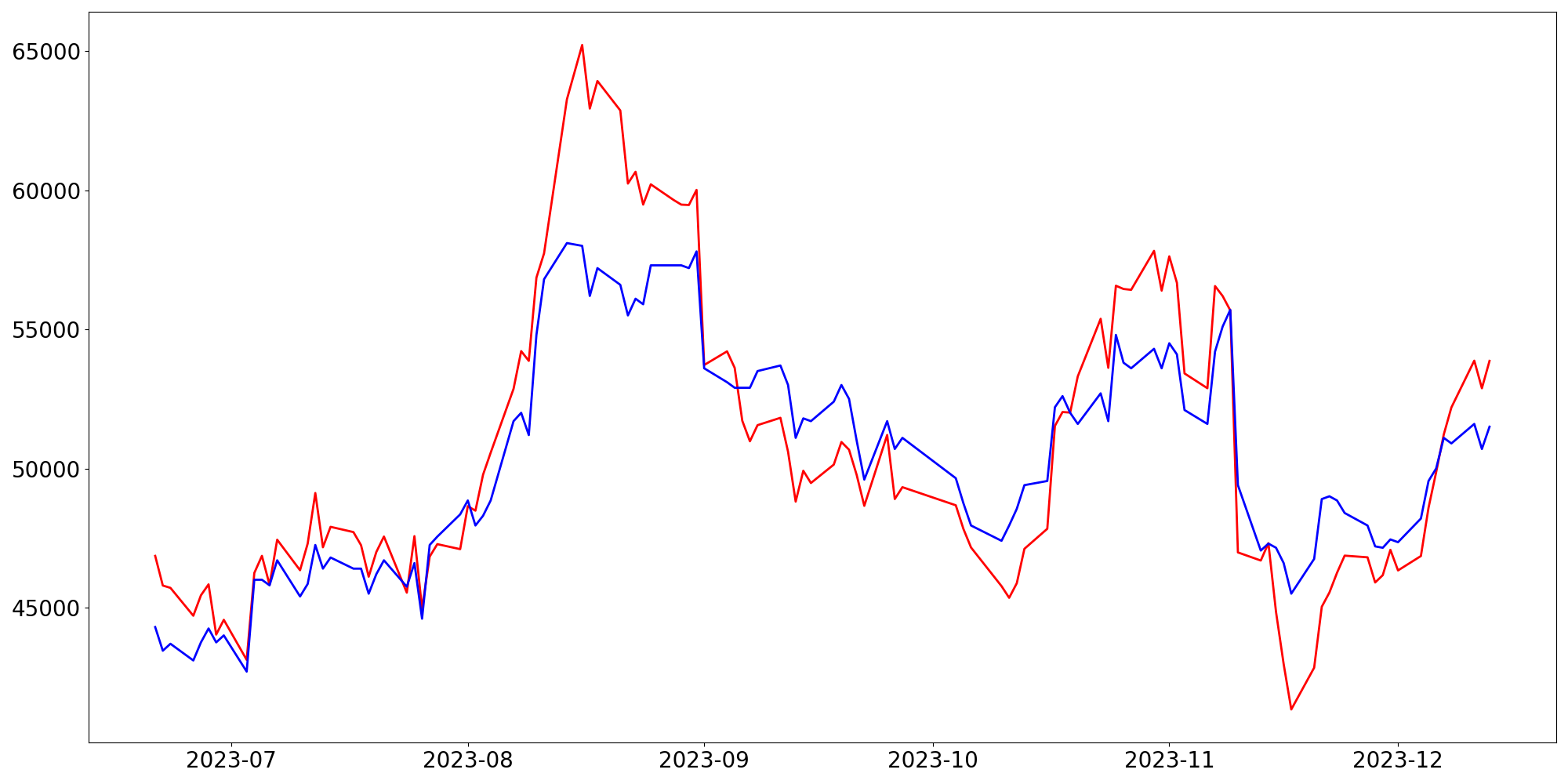 [ - : 실제값(종가) / - : 예측값(종가) ]