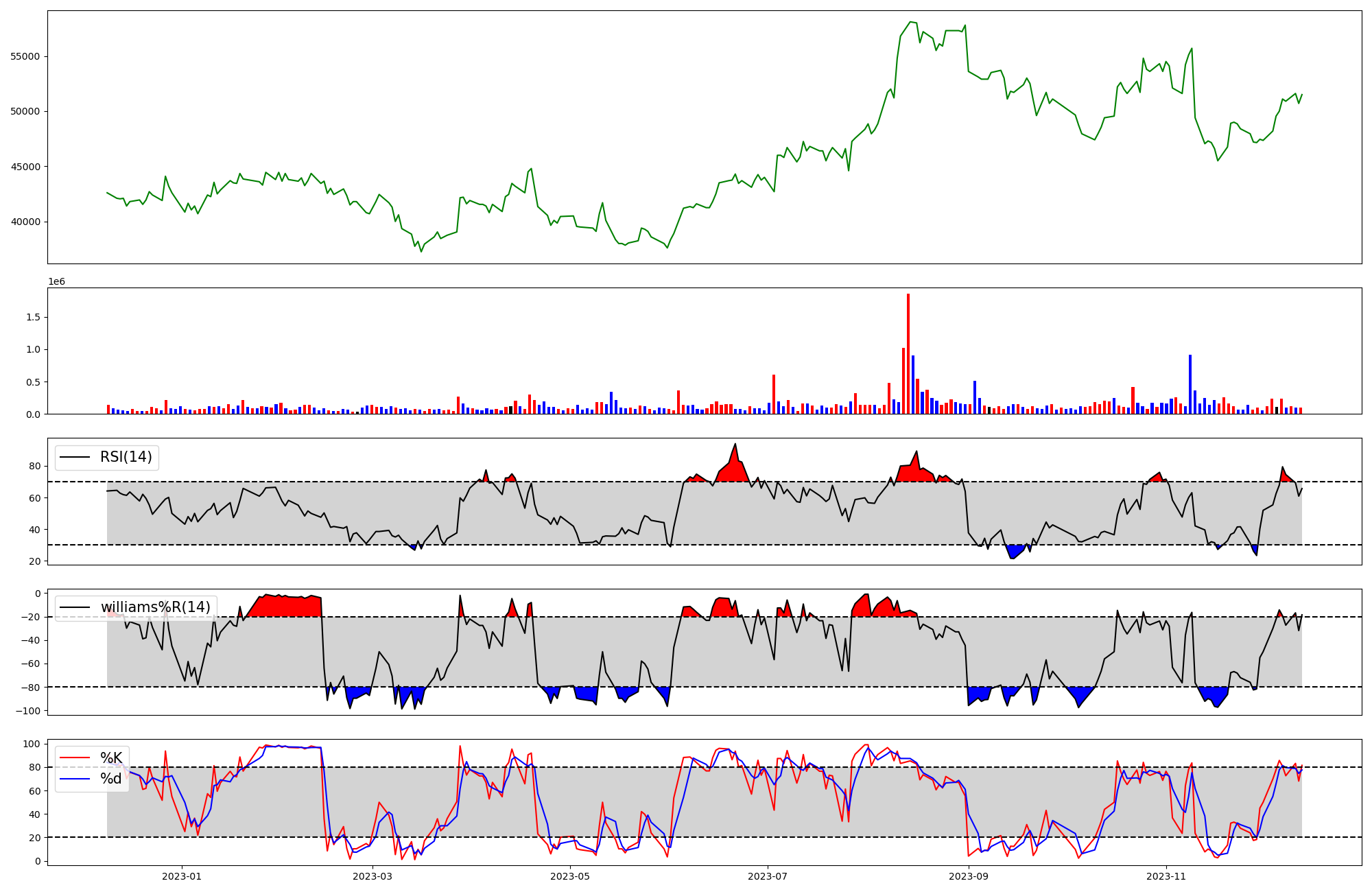 | RSI | Williams %R | stochastic(%K) | |