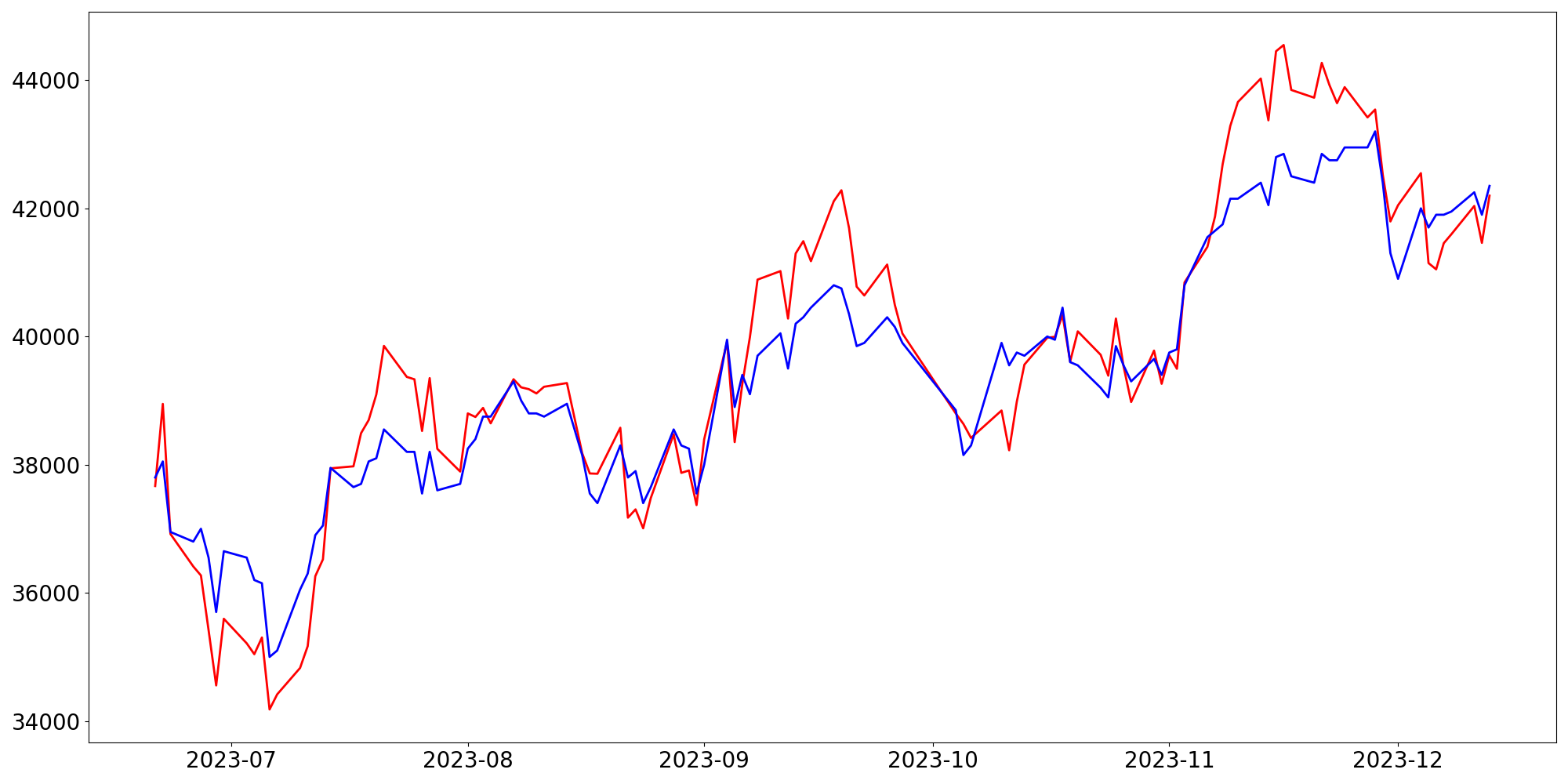 [ - : 실제값(종가) / - : 예측값(종가) ]